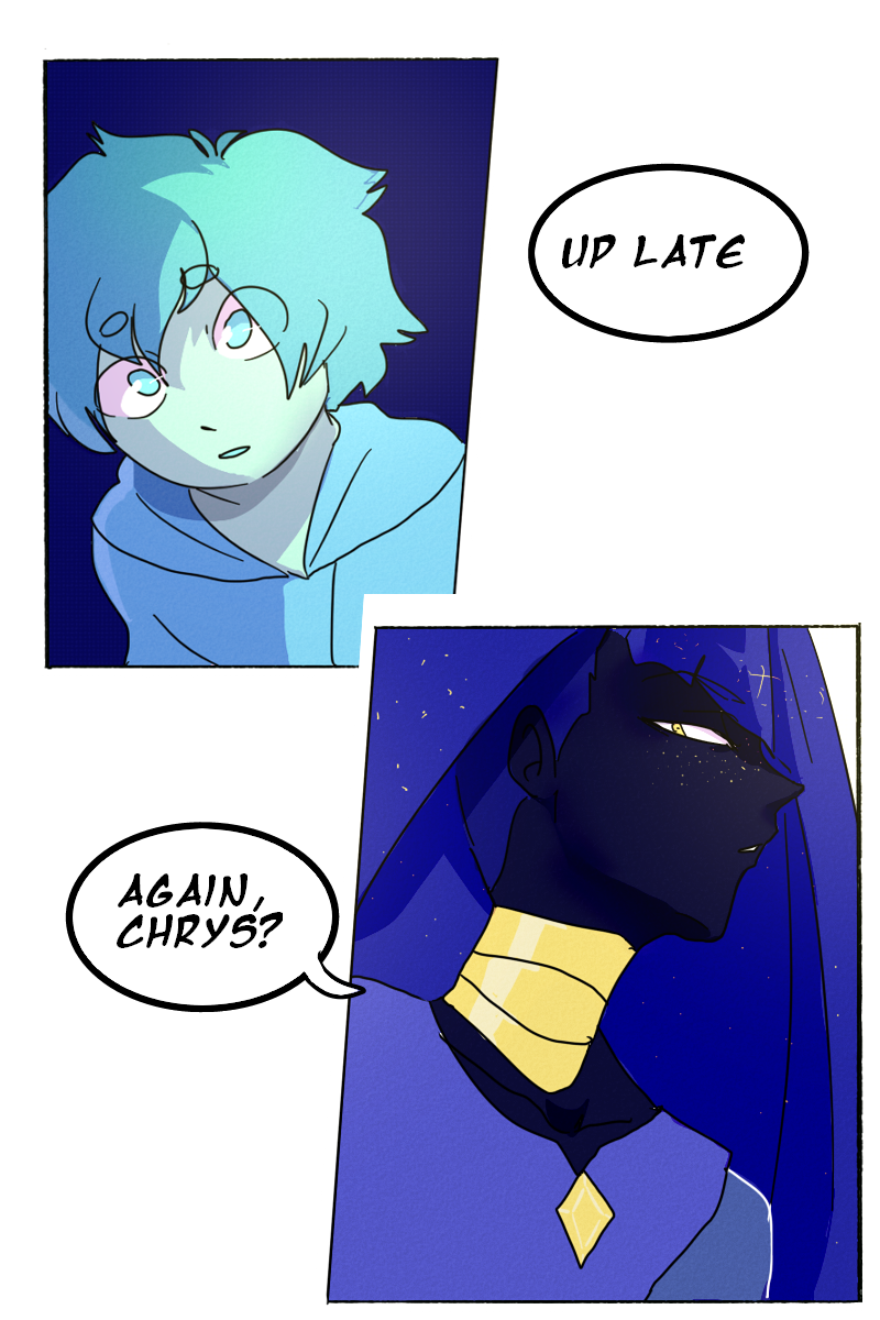 Being the youngest and most frail of his companions, Chrysocolla is shut away from the rest of the world, destined to spend the rest of his life under the protection of his home. He is left to only wonder what could be out there...but not for long.