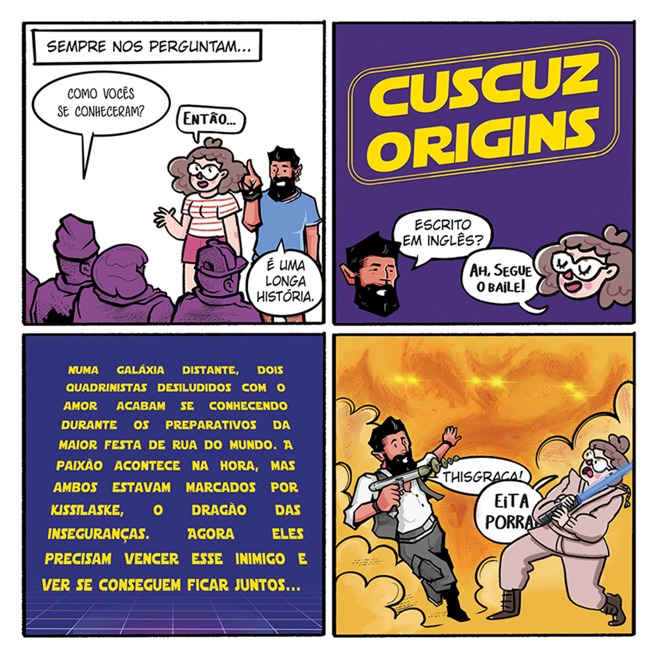 CUSCUZ SURPRESA é uma série de tirinhas feitas por Helô D'Angelo, de São Paulo, e Daniel Cesart, de Salvador, sobre namorar à distância, nossos encontros, as diferenças e semelhanças de cada cidade. A série é pra gente se divertir e estar mais pertinho um do outro.