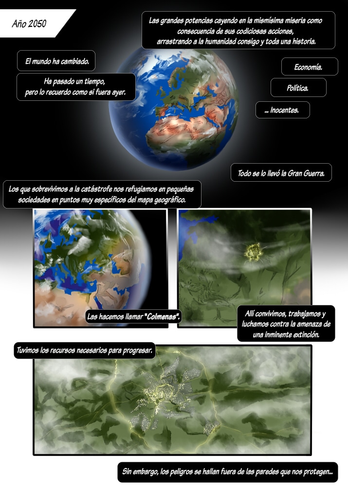 La población mundial se ha reducido a menos de la mitad, viven en pequeñas sociedades, en puntos concretos y protegidos. Allí el desarrollo tecnológico y científico está satisfactoriamente avanzado y permite una mayor comodidad y adaptación, sin embargo nadie quiere pisar fuera de las murallas que rodean estas pequeñas ciudades, donde el verdadero problema yace y las consecuencias de la guerra se hacen más palpables.