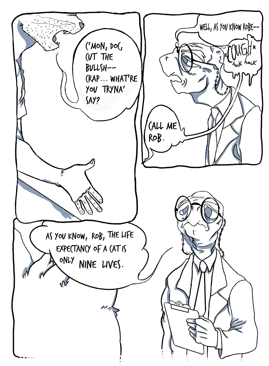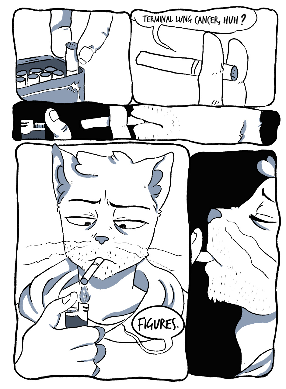 Life has never come easy for Robert, and it gets even harder with his diagnosis. What happens when a cat reaches the end of his nine lives? Find out in "Death, Acceptance and Everything In-Between"!