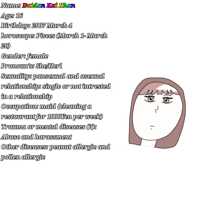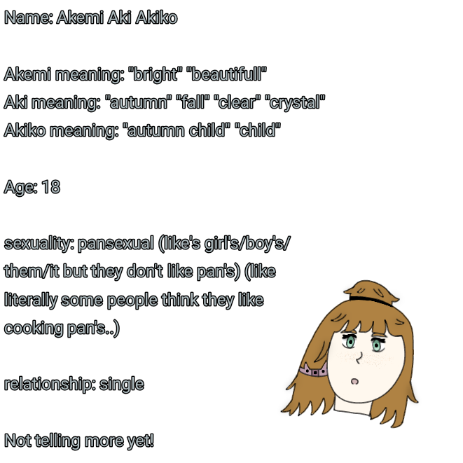 This is the Character's Introduction's so hope you'll like them. Also I will most likely post every friday and monday so yeah I will try more but I won't promise anything <3 Oh and don't ask where the outfit is from because I made it in another app and put it there, ok?