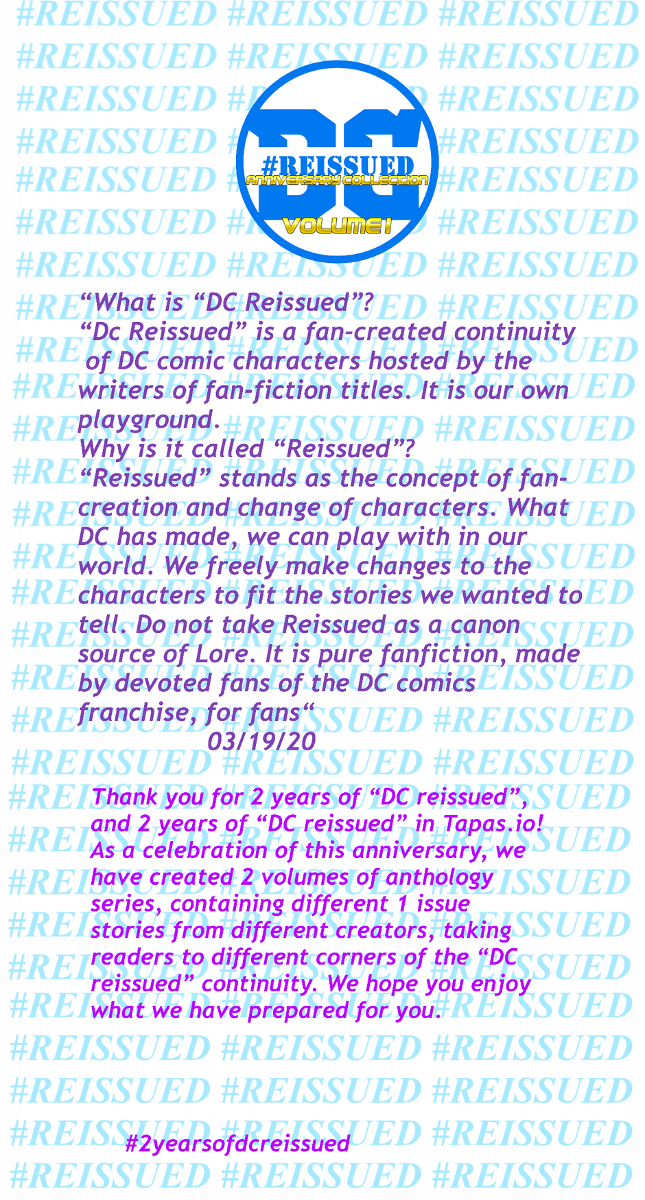 As a celebration of the first anniversary of DC reissued titles in Tapas.io, we have created 2 volumes of anthology series, containing different 1 issue stories from different creators, taking readers to different corners of the DC world, from Superman to Batman, to Wonder Woman, Flash, etc. We hope you enjoy what we have prepared for you.