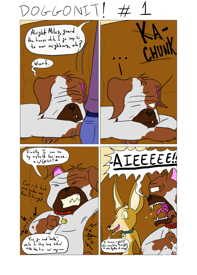 A funny comic in which depicts the adventures of (incognito) anthropomorphic talking dogs going through life in an suburban neighborhood when their owners aren't looking. Looking for bones, battling the mailman, comparing owners, chasing thieving squirrels, meeting new dogs, dealing with cats, and contemplating the true meaning of life for a dog. Nothing too fur-fetched about it.