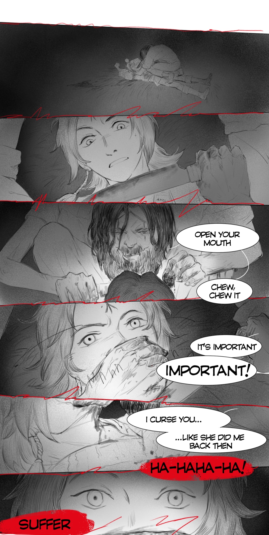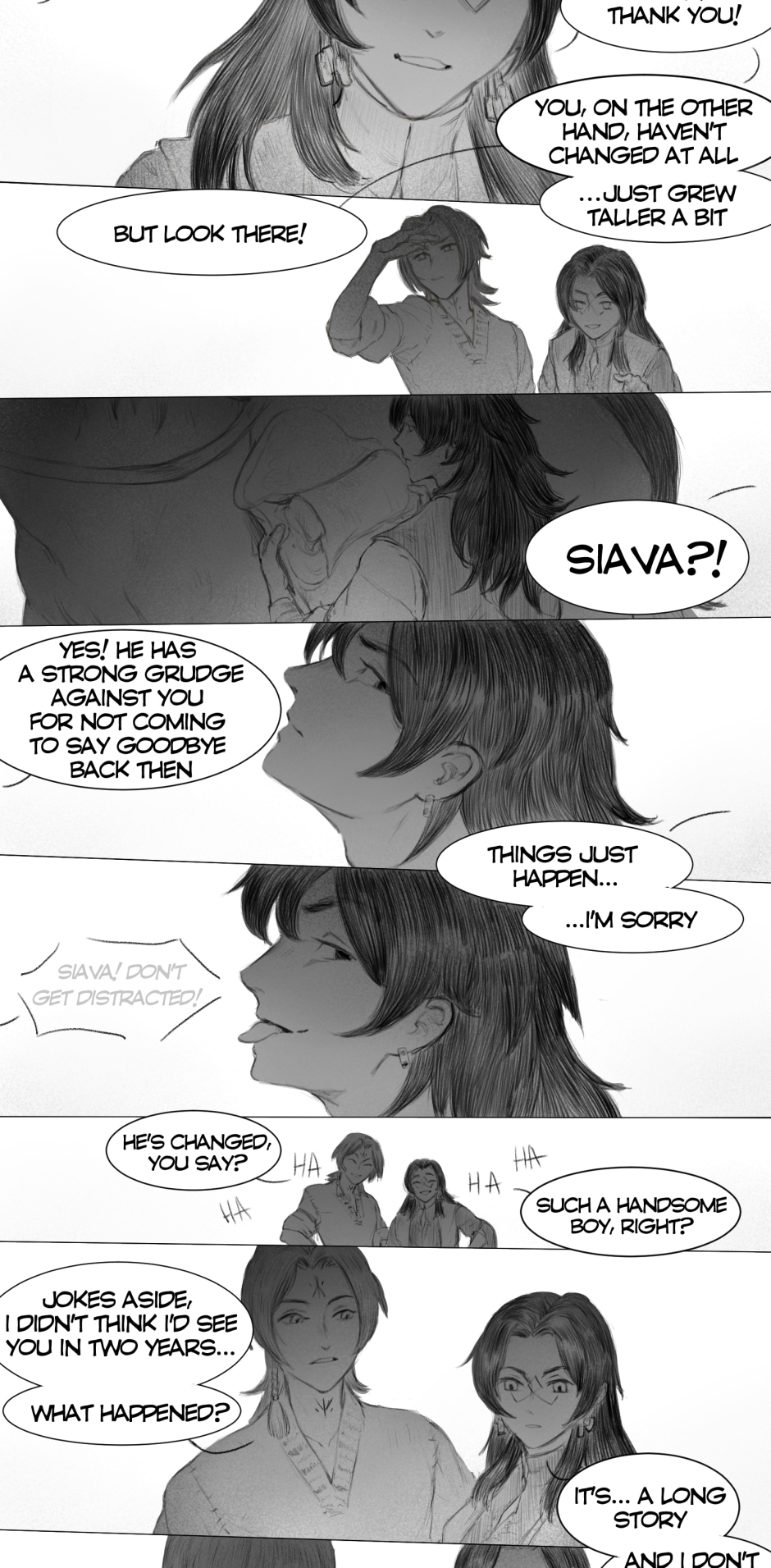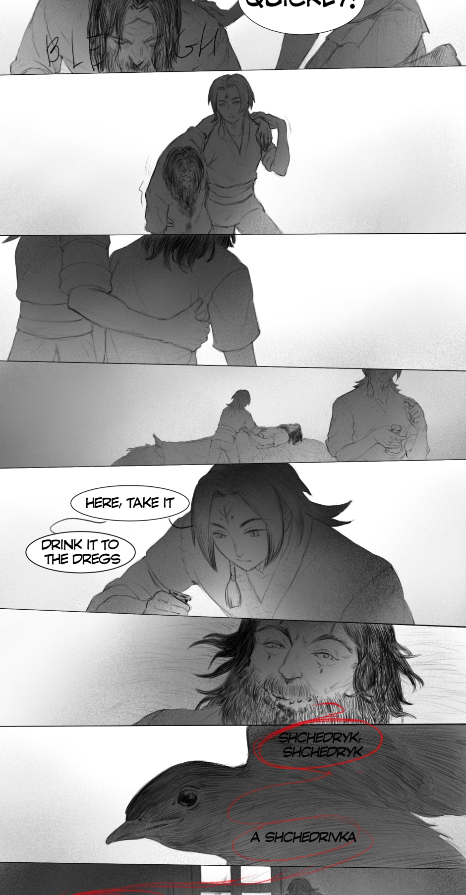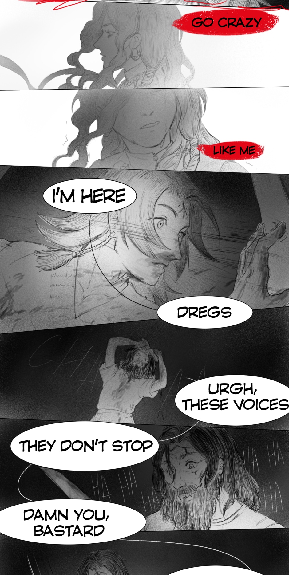 The artwork is very beautiful and detailed. The rough style of the scenes really fits the vibe of the story. The plot at the scuffle between Iva and Aras (I hope I got the names right) was pretty crazy and suspenseful. I was worried Aras was going to kill Iva on the spot, but he didn't, so thank goodness for that. Anyway, great work!