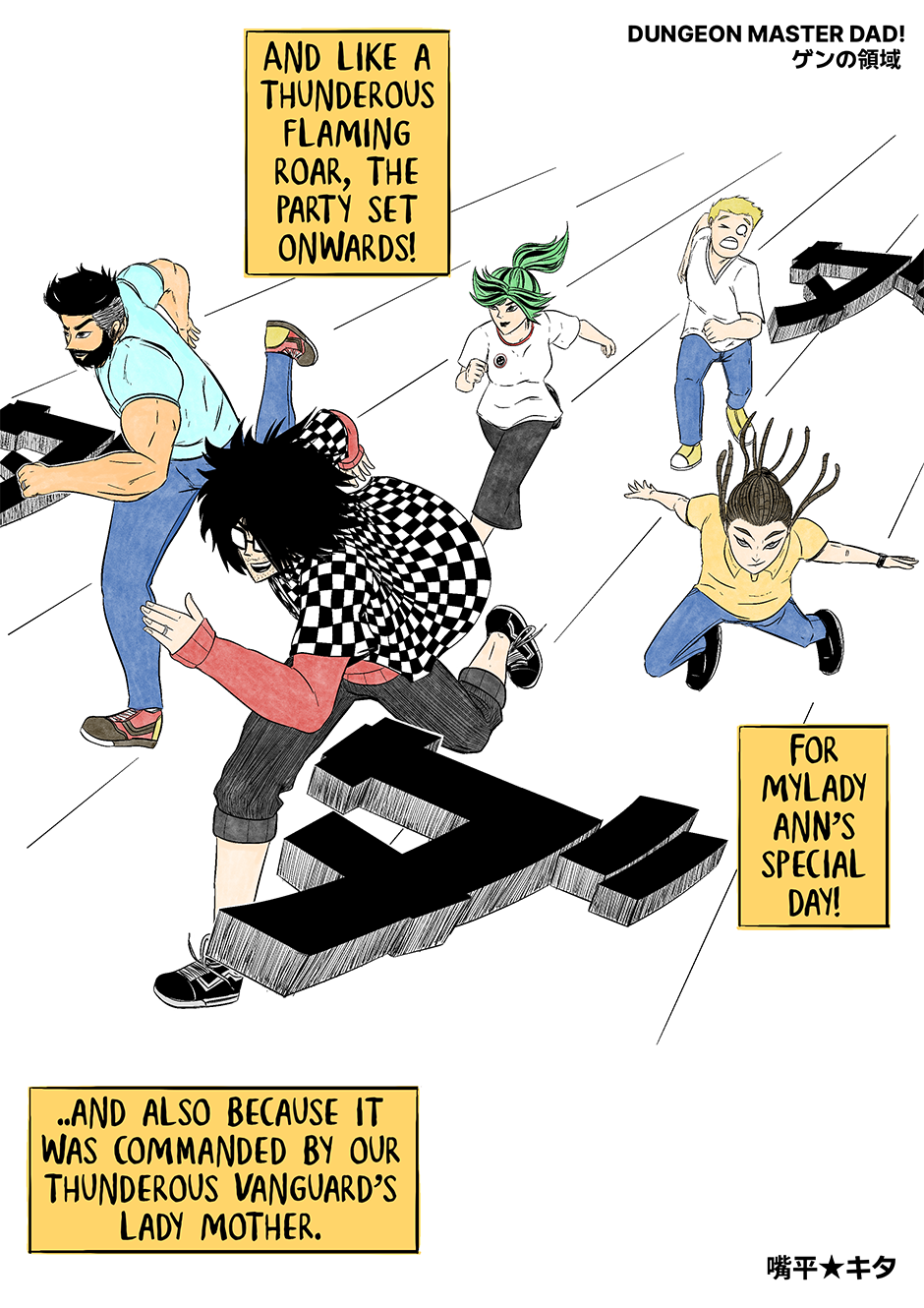DMD! primarily follows the father-daughter relationship between Gen and Ann, heavily influenced by Gen's passion for tabletop roleplaying games, which drives his and his party's vivid imaginations.
