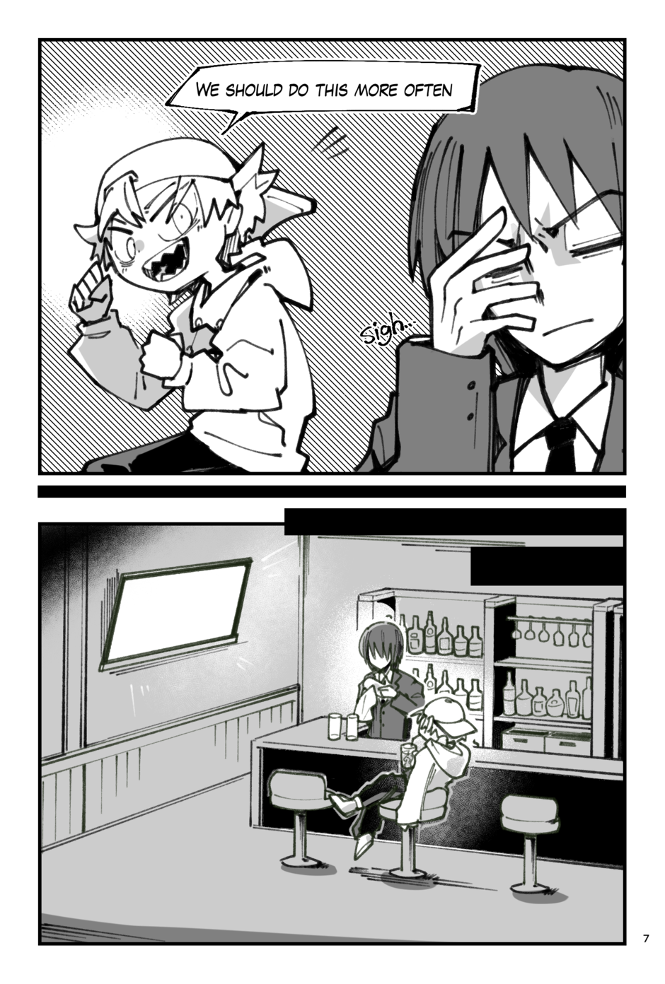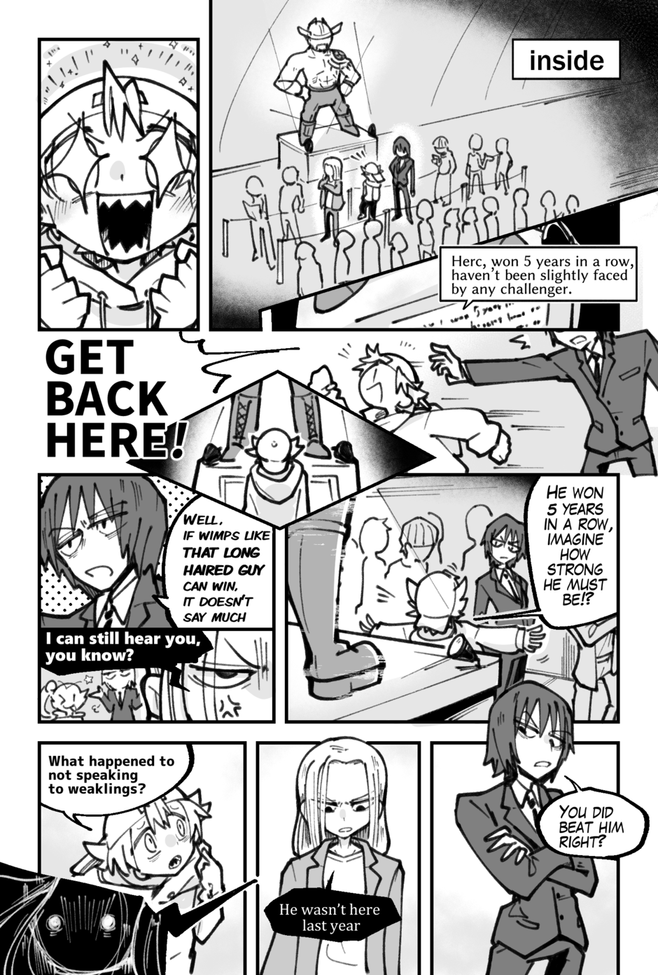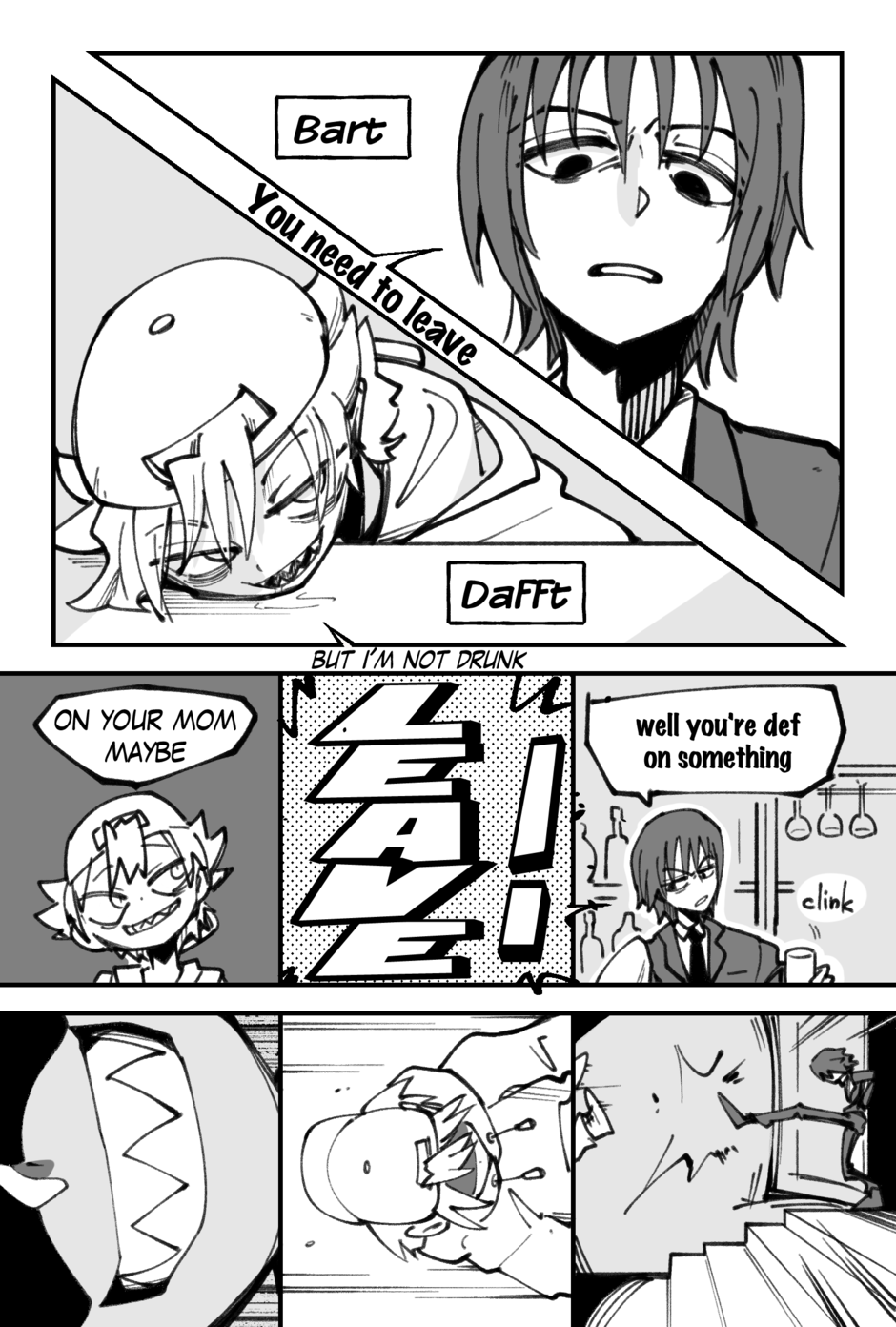 Dafft is about a lanky sharp teethed weirdo who befriends a tall, silent bartender. They join a tournament to fight the strongest people alive!