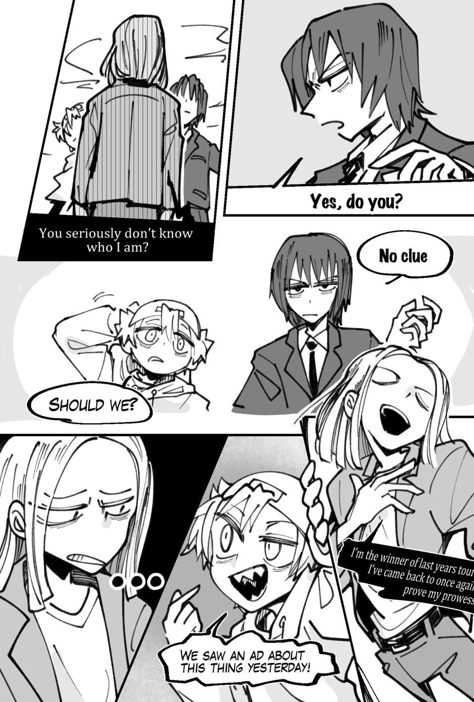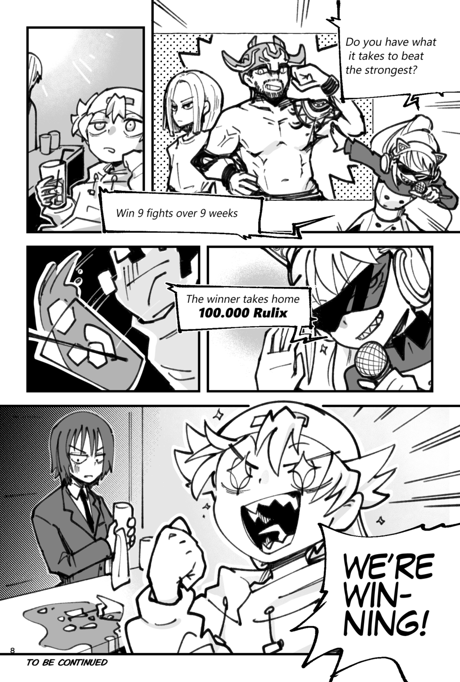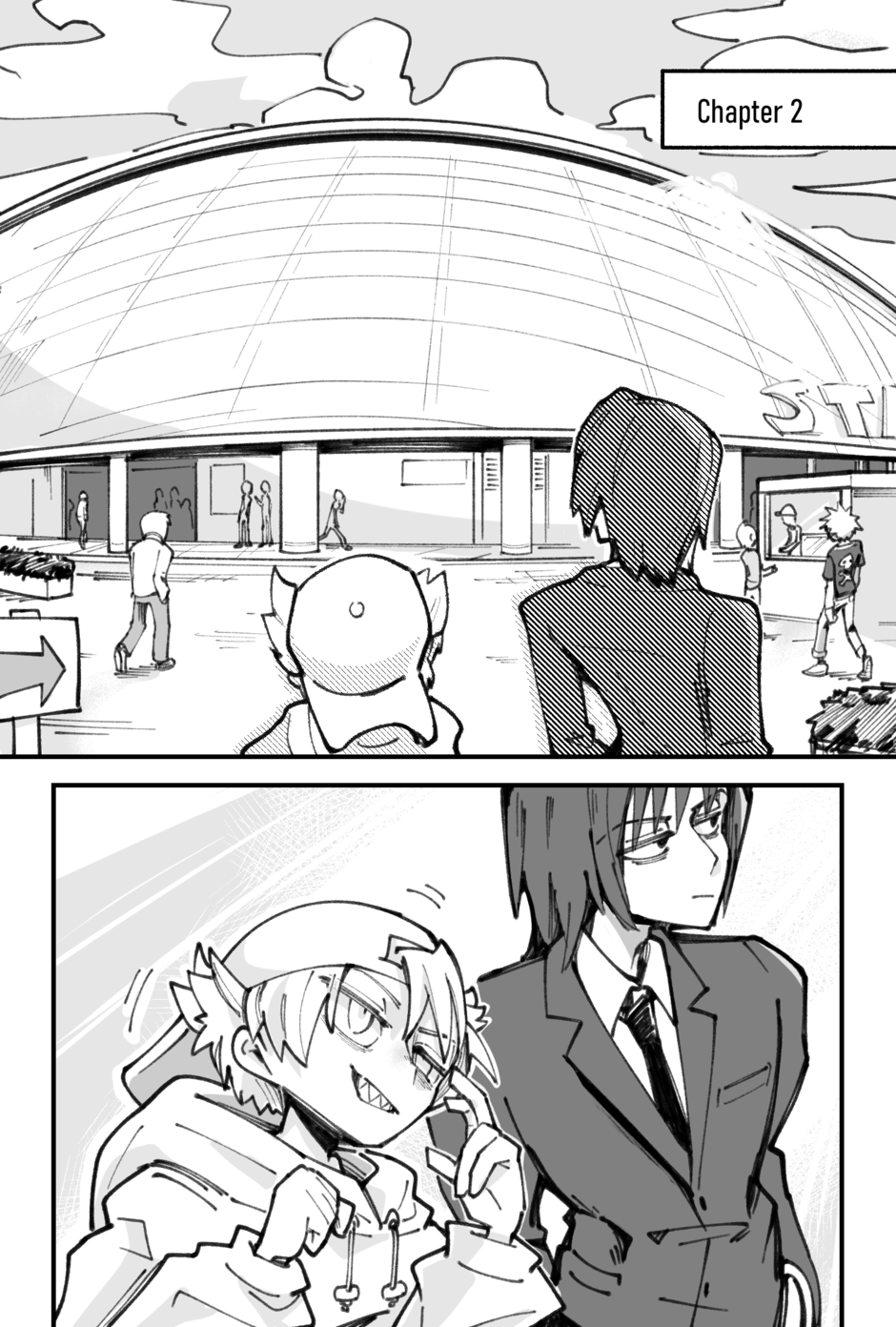 Dafft is about a lanky sharp teethed weirdo who befriends a tall, silent bartender. They join a tournament to fight the strongest people alive!