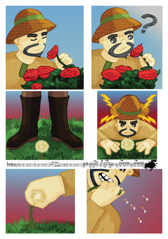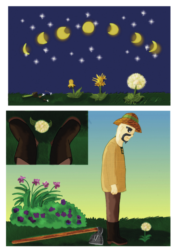 Dandelion or Stanislaus War against the Dandelion tells the story of Stanislaus, a gardener with a heart as hard as a clod of earth, who only appreciates the flowers he considers noble. One day, without warning, a dandelion invades his garden, and the gardener's life completely slips out of control, and it is up to him to decide whether or not he is open to change.