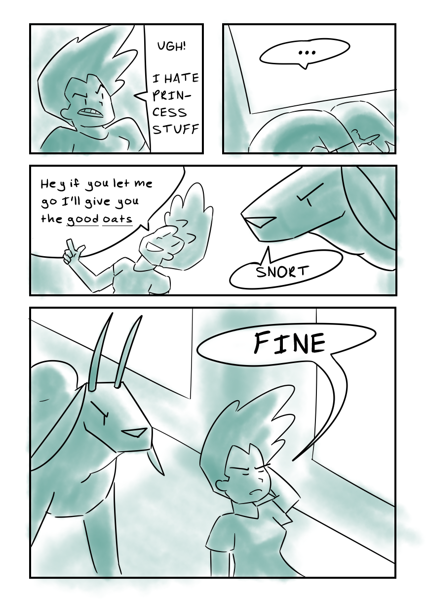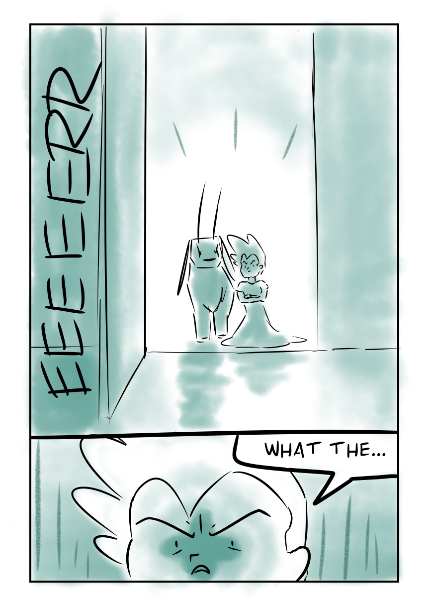 Tamsin and Cow are walking down a hallway...