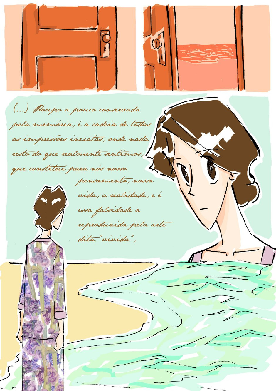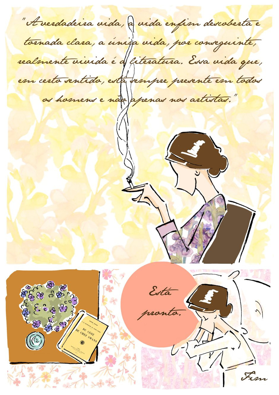 Webcomic biográfica da escritora Virginia Woolf nos anos 20, época em que ela escrevia a obra "O Tempo Passa" que em seguida foi adicionado para uma das três da partes da obra-prima "Passeio ao Farol". Na época a artista lia o livro "Em Busca do Tempo Perdido" de Proust, e a visão do autor sobre o tempo ativou a sensibilidade de Woolf sobre as dimensões do tempo.