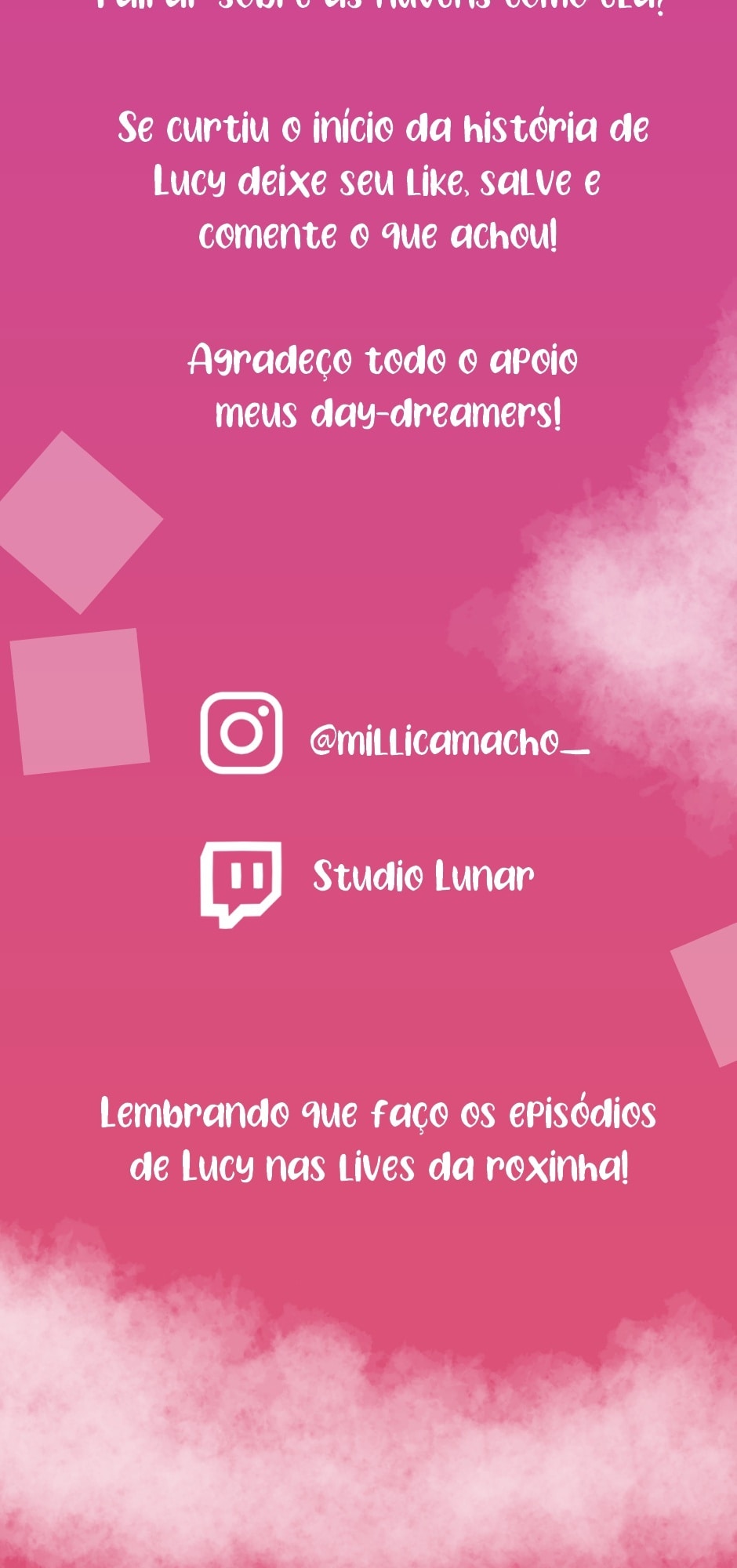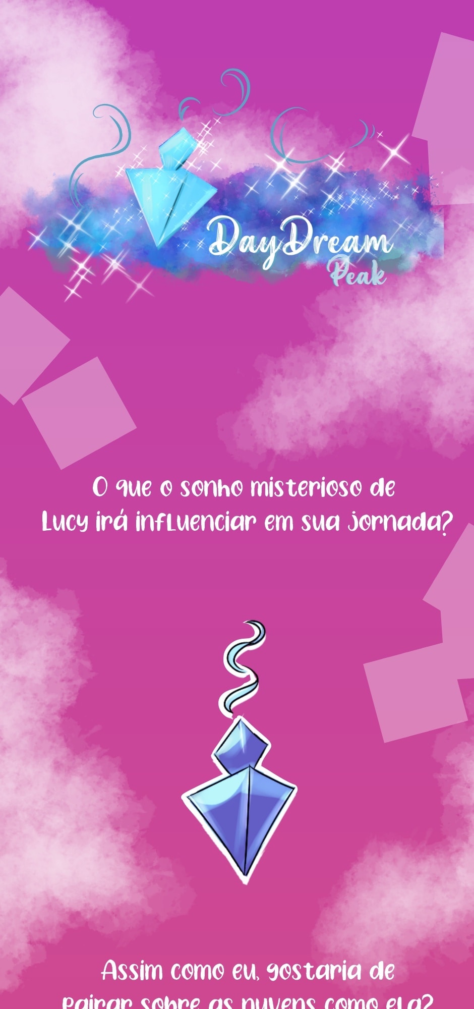 Depois de tantos meses de idealização e produção trago a vocês DayDream Peak a história oficial de Lucy! Aparentemente ela não faz a menor ideia do que tá acontecendo, e se fosse eu também não saberia! E vocês? Gostariam de pairar sobre as nuvens como ela?