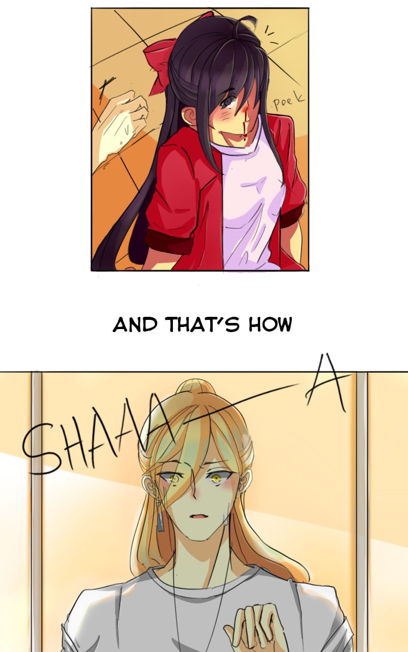 Rhea is an 18 years old art student at Gode University. For so long her life has always been like a bland cup of coffee that made by an amateur barrista. Thus it doesn't have any taste nor heat, though after one life-changing kick that delivered to Rhea's face by a certain boy named Jin. Now her days are always bring a new tasteful story to a blank pages.