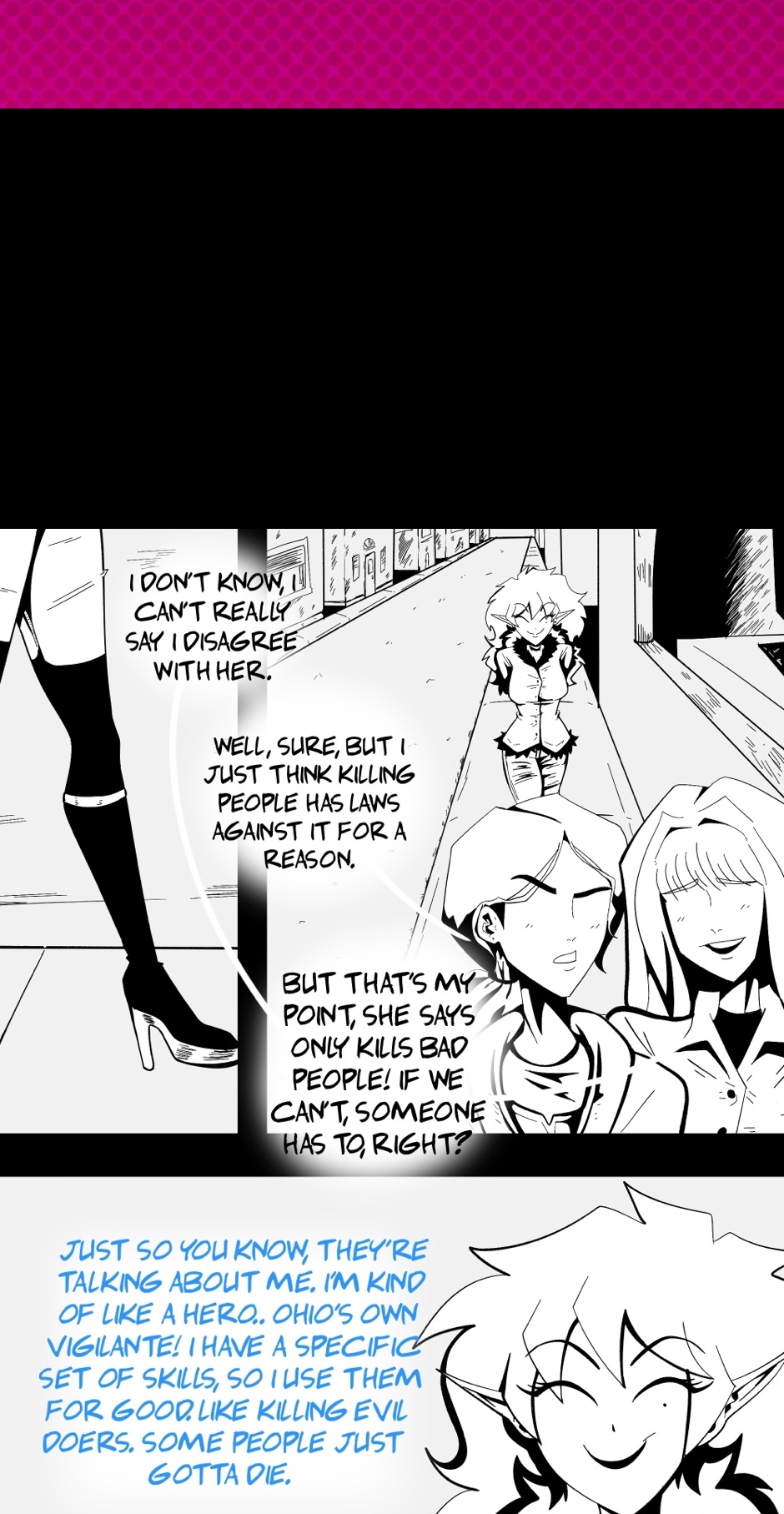 Pursuing who she believes to be an attention stealing copycat, self-proclaimed “hero” Frankie drags along a mute camp killer and a go with the flow van lifer down the east coast. Motivated by spite and an itch for fun, the three girls navigate their way around Florida with the unexpected obstacle of deadites set out to kill them all while trying to find their attention stealing culprit.