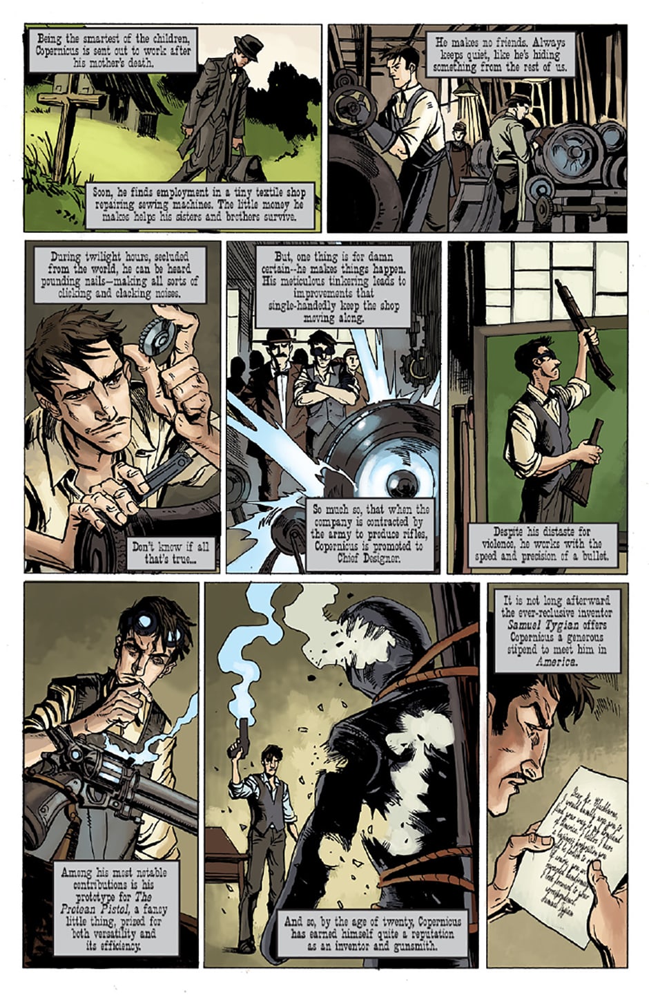 In this issue: The Harvey Award-winning HIGH MOON team of DAVID GALLAHER & STEVE ELLIS tell the story of inventor Copernicus Blackburne, who risks even his immortal soul in his Faustian quest to build ‘The Devil’s Six-Gun!’