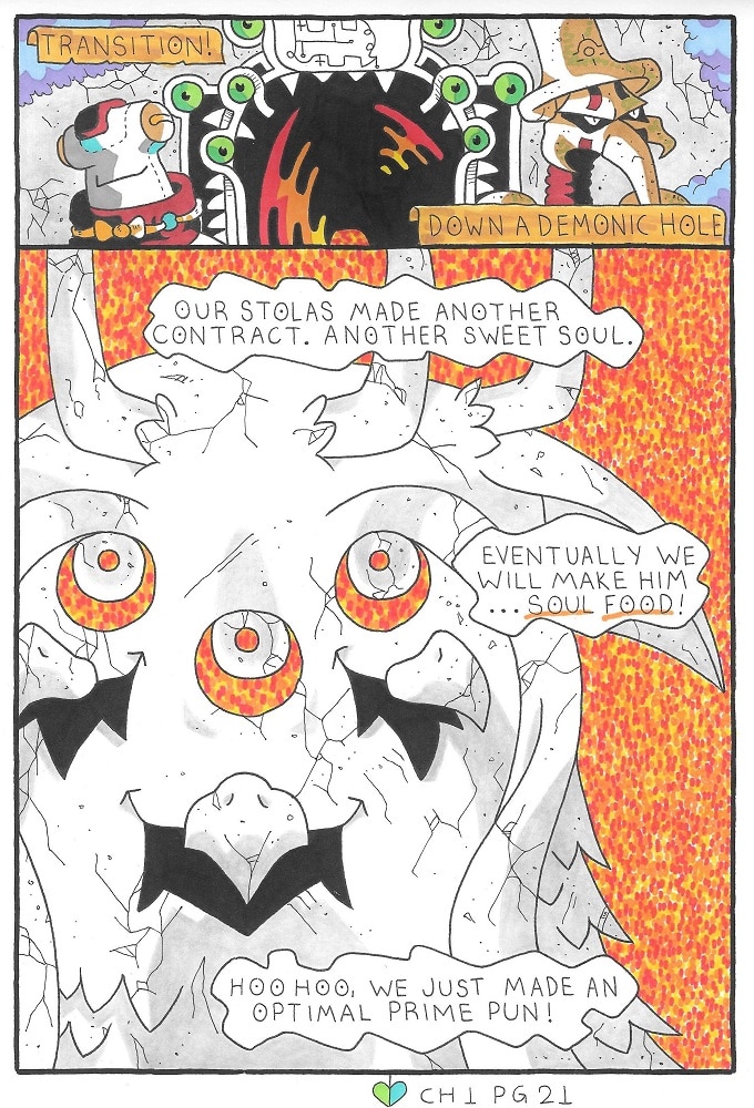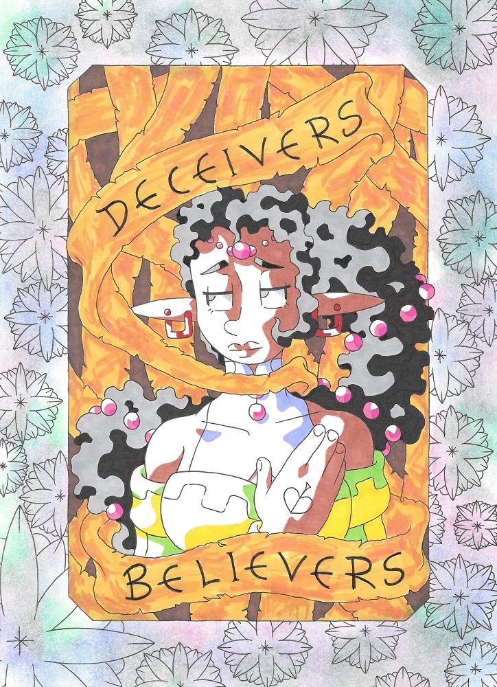 I find it’s really hard to sell myself when I have nothing to sell. I’m a dude who draws who’s willing to share this tale I’m telling with anyone who has free time. So, ‘Deceivers&Believers’ is my comic about actual angels and demons trying to instigate influence over my chaotic characters. Unfortunately for the forces of good and evil, people seem to be an assorted mix of both good and evil traits and it depends on the time of day which side they’re siding with. What I think I’ve created is something that is both inspiring and infuriating, literal but layered, sweet yet salty. I simply adore complex characters and if you do too, let’s hang out?