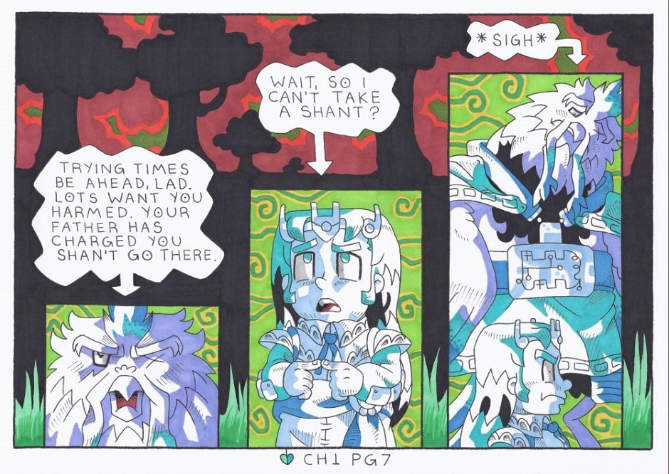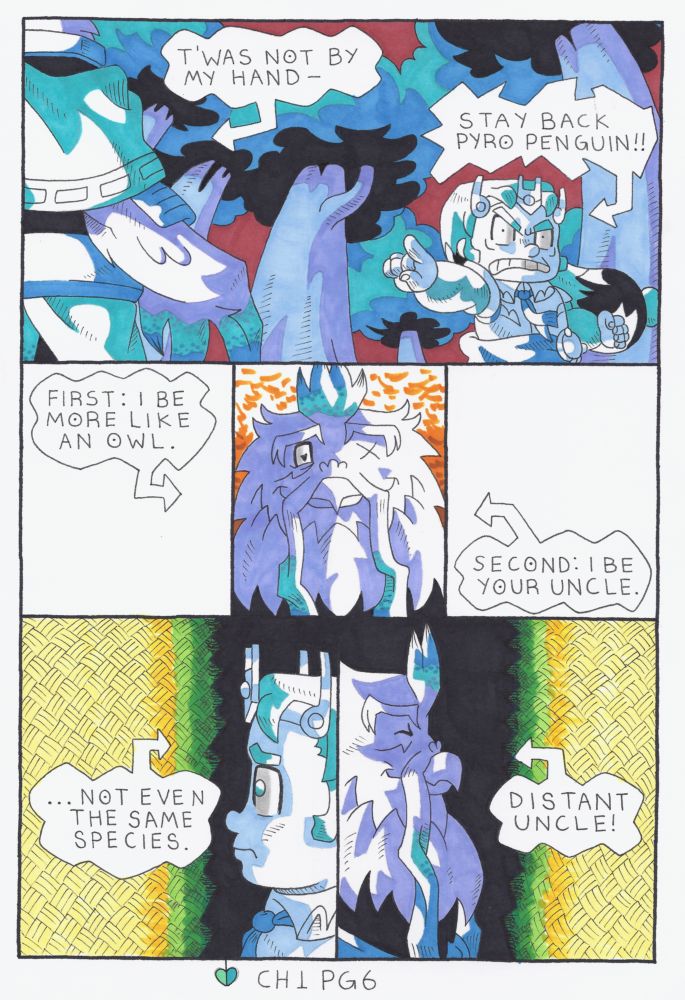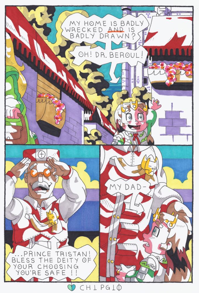 *Tristan’s butt is rescued by his feathery “Uncle” and promises (kinda) to stay in hiding and train until the prince is ready to be reunited with daddy Rivalnal.