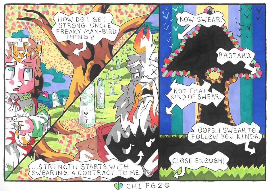 *Oh, and the Uncle is a demon. Don’t make contracts with articulate bird-men, kid!