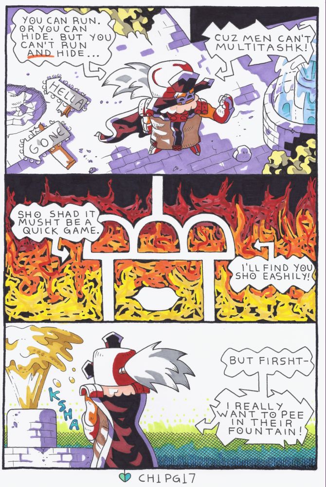 *A man with a mask and a lisp is responsible and calls out Tristan’s dad as a murderer. Ticked at the lack of king butts around the joint, the masked man takes his frustrations out on the prince’s butt.