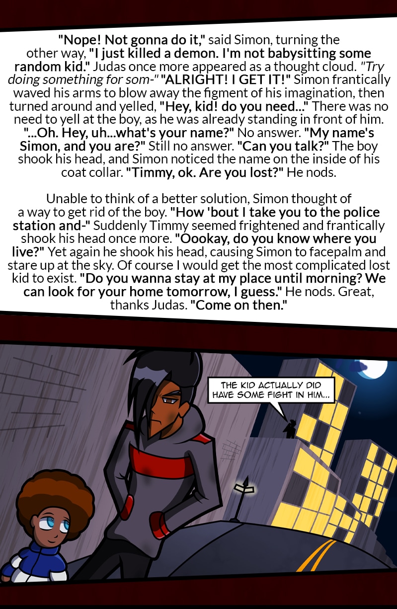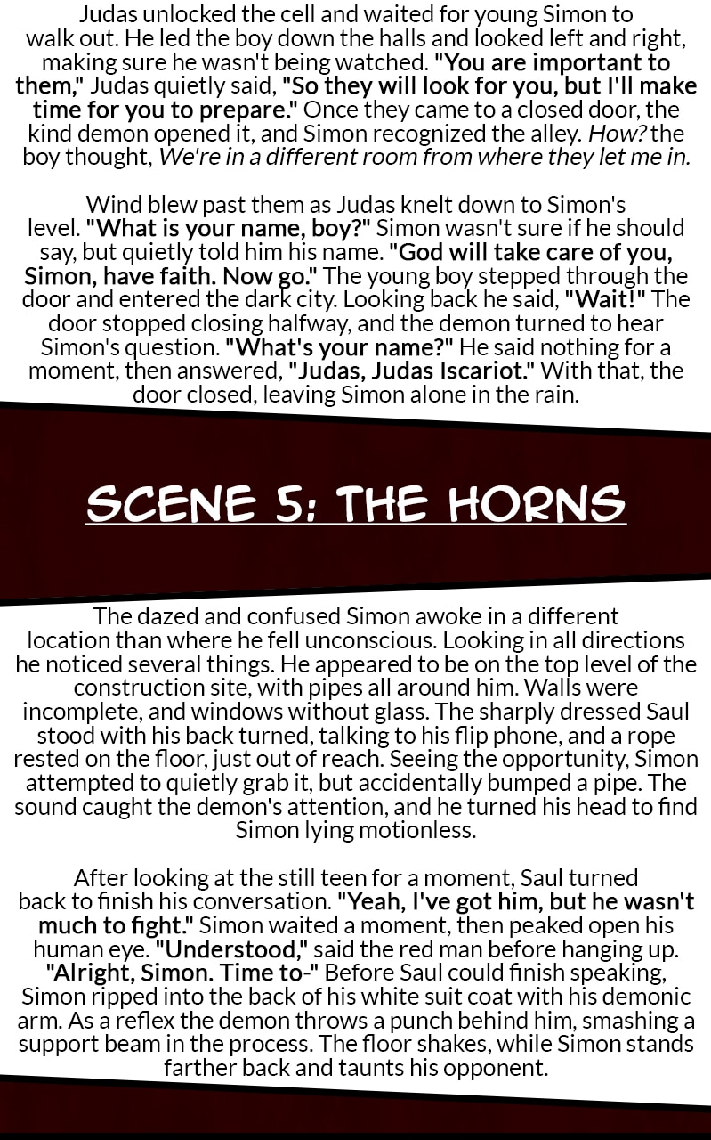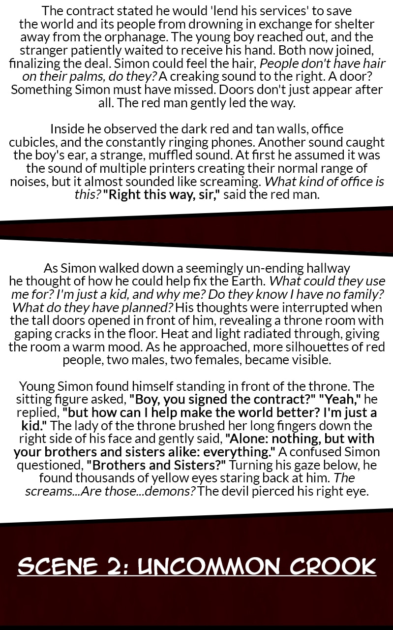 It was a dark, rainy night for the orphan Simon Stone when a sharply dressed demon tricked him into signing a contract. Now a half demon, his soul is doomed to Hell when he dies, but the devil may have other plans for him. To save himself, and unlikely friends, Simon must search for a cure and find the root cause of his self-destructive hatred.