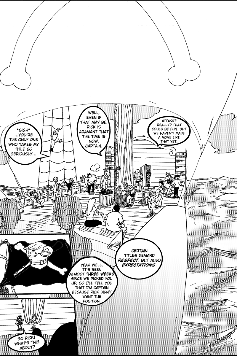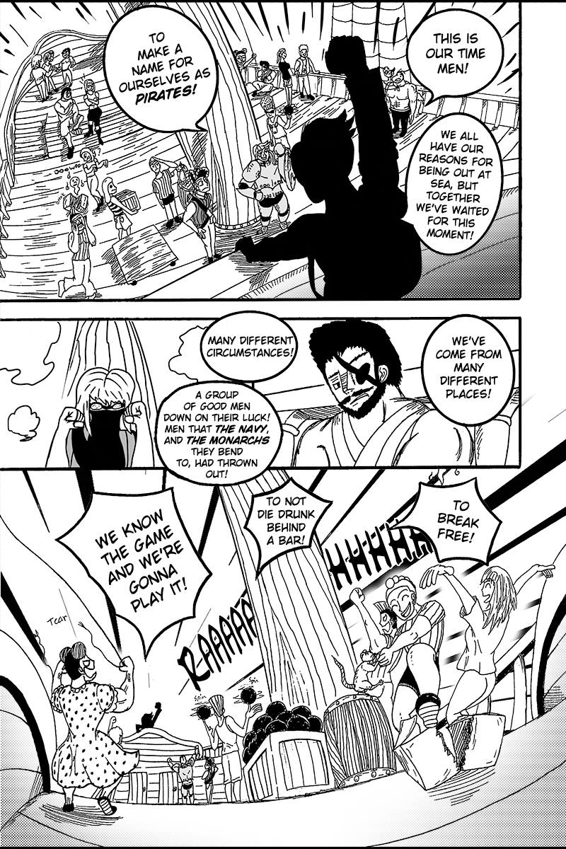 William, Duros, Ragnar, and Verona took to the seas as pirates in search of their own goals. After a shipwreck wipes out most of their crew, they meet a mysterious girl, Pearl. This makeshift group, brought together by misfortune, set out to sea seeking answers to both their individual quests and the meaning of a crew.