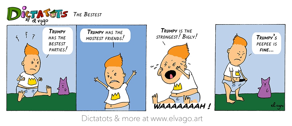 DictaTots is a bemused sociopolitical satire inspired from the actions and words of real live people recast as tyrannical toddlers.