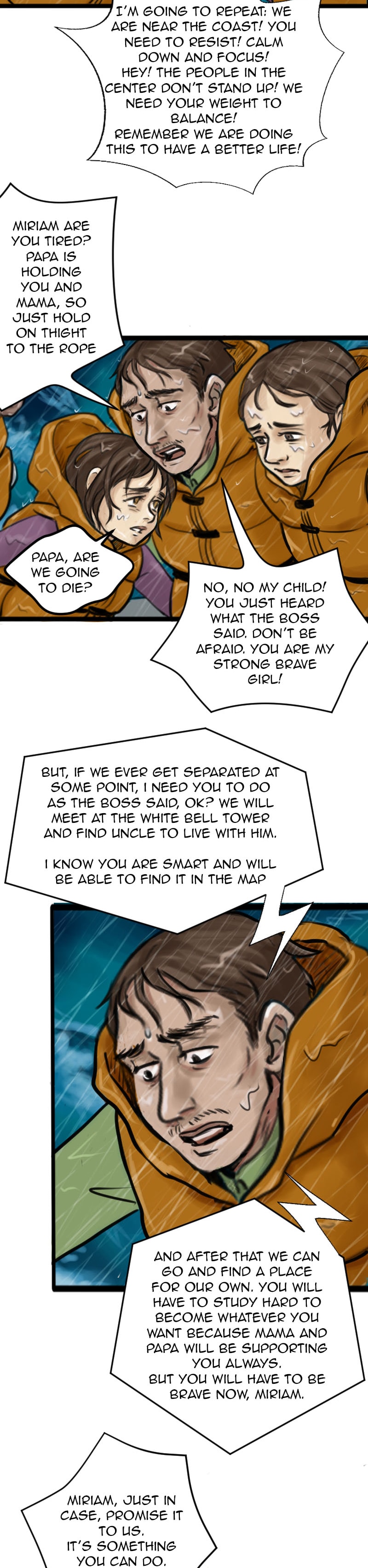 The story is good so far. Very intense at the beginning, makes me wonder what happened to everybody on that raft. The mysterious stranger definitely brings some questions and the way the villagers act. It's a pretty good set up for a good story.