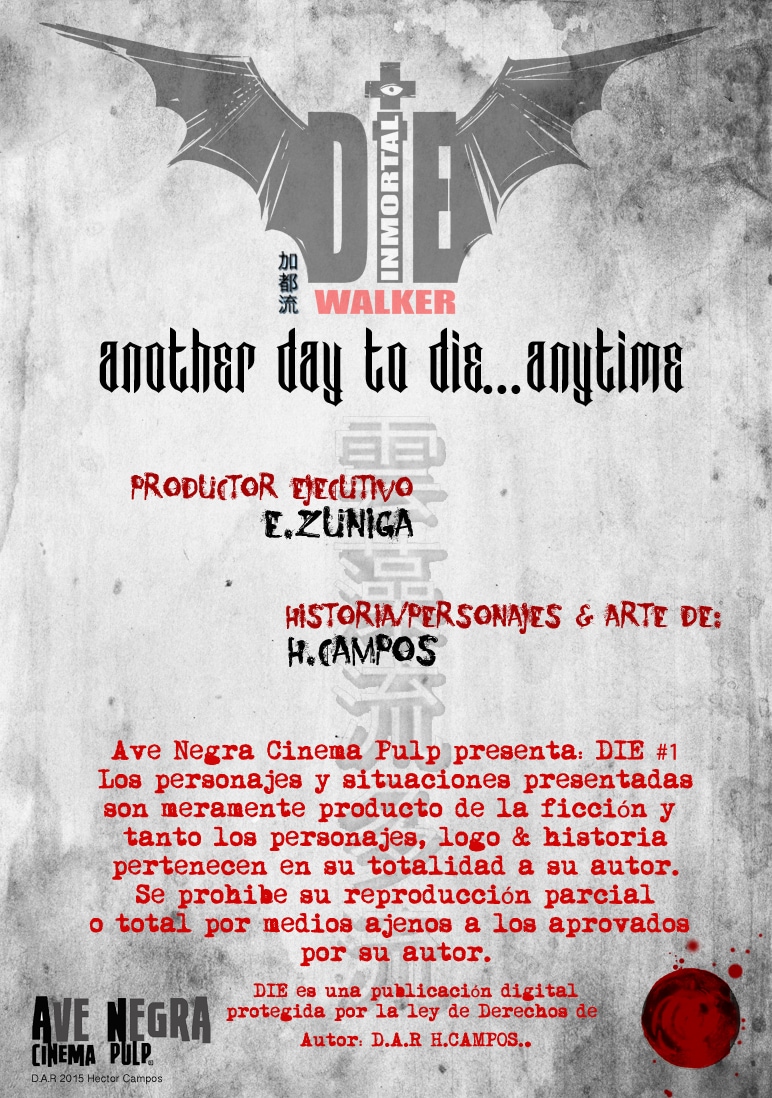 Cator's DIE INMORTAL WALKER: Es una imaginaria sobrenatural/drama que sigue la búsqueda del amor eterno sin importar renunciar a vivir por siempre. La batalla del caminante diurno vs las fuerzas del mal es eterna.