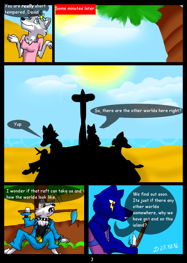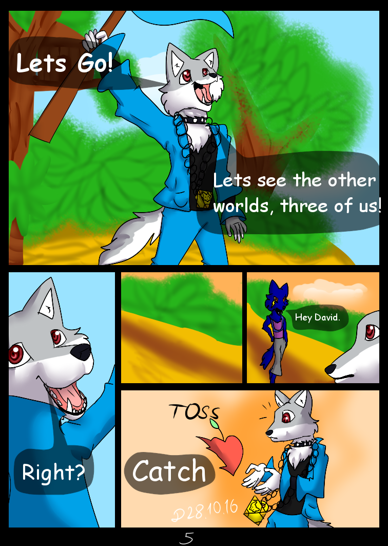 The story begins, when David,Lena and Eric making a raft to get into another world. David (The Protagonist) was wondering if there is another world and raft can take them. Then David says that they go three. Eric gives a connecto-fruit which is used for romantic moments and ask David if he can try someday with his girlfriend. David was shocked and confused about what Eric says. In 2 comicpages we saw a space ship with. Chakra Heroes (by Arven), Bloom and Bryza (by Moonspirit13). Bloom explains to Cheetah why they need to be in this form, then gives a letter to the C.Y to read it. The next comicpage David was laying on the bed thinking, then he get the connecto-fruit and gets in though, then he blushed and throws the connecto-fruit and said is stupid and Lena was making the necklace.After C.Y readed the letter they heard a "zapping" sound behind. It was Kobura and Tikkeri Shockwaved by BB-10 (Star Wars Fan OC). Orca immeditly asked whose idea to come with them. Tikkerii says it was Koburas idea. Then Kobura explains why.
