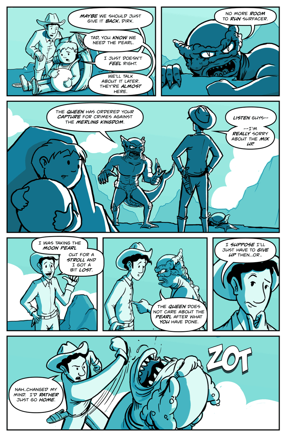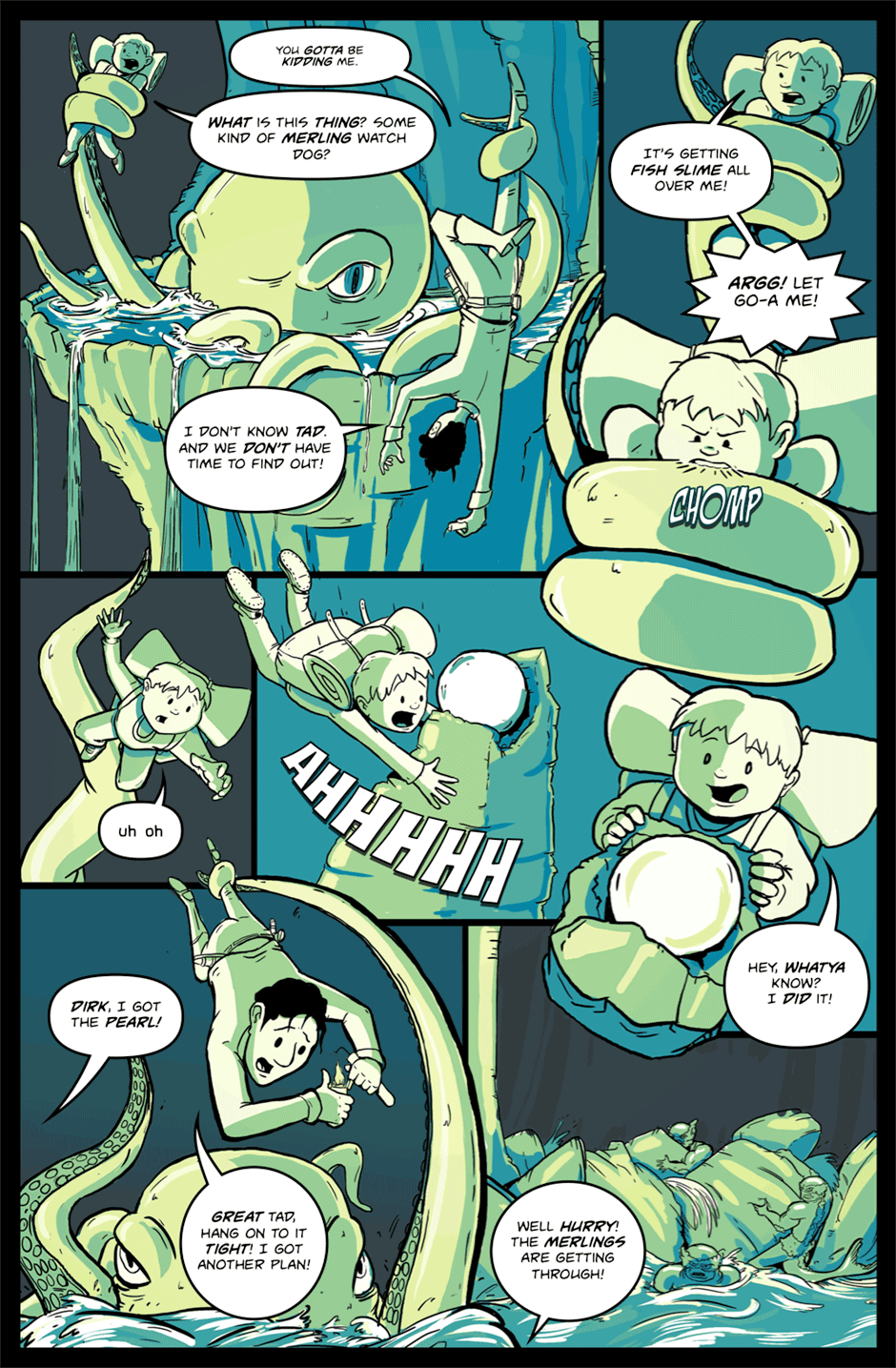 Dirk and Tad are on a secret mission to steal the Moon Pearl from the Merling Kingdom. Can they get the pearl and escape with their lives? The fate of the world hangs in the balance!