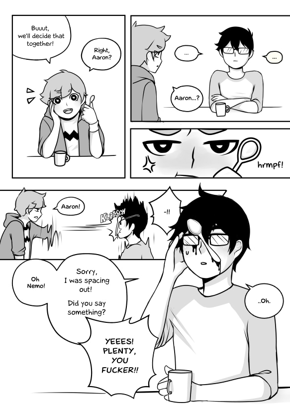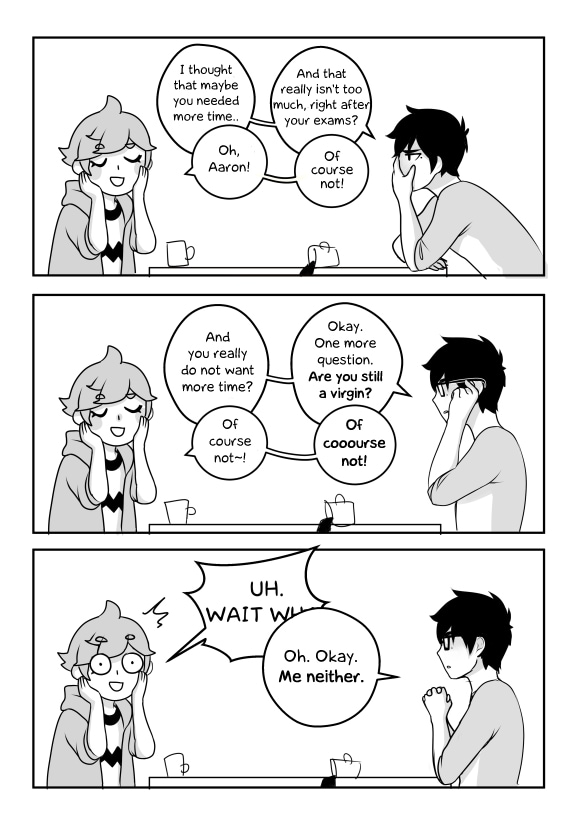 After 3 months Aaron and Nemo decide to finally take the final step in their relationship. But due to an unnecessary and very stupid misunderstanding the whole sex-thing gets a little bit more awkward than it already had to be..
