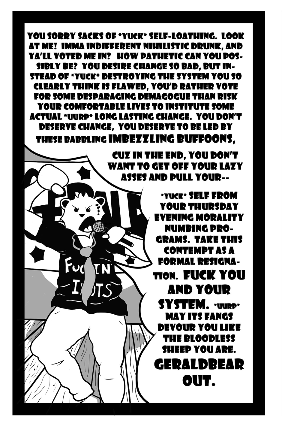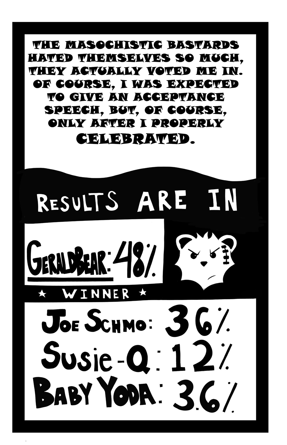 #geraldbear #alcohold #Politics #election #cartoon #drunk #comedy #misadventure #Darkhumor