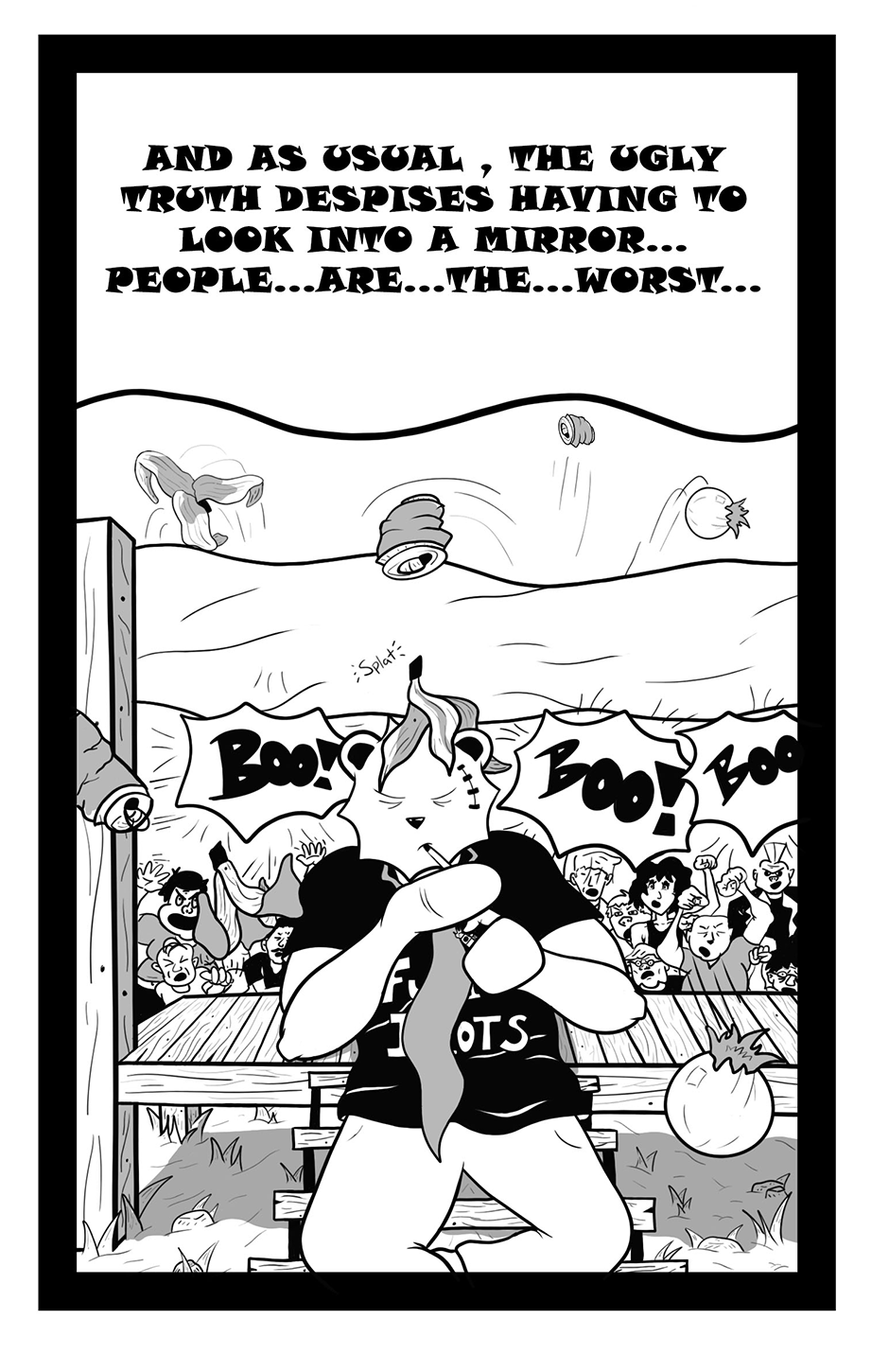 An anthology and hodge podge collection of characters and stories that span from crazy to outright deplorably insane. On one hand we have the lovable sentient but nihilistically opinionated alien bear to the directly opinionated host of Jerryfood. Riddled throughout is Chet the reincarnated Ginger following the cycle of life, as well as the Dharmic Brahman Cat Nara and his sidesick de facto Wang traveling along misadventures and hilarity.