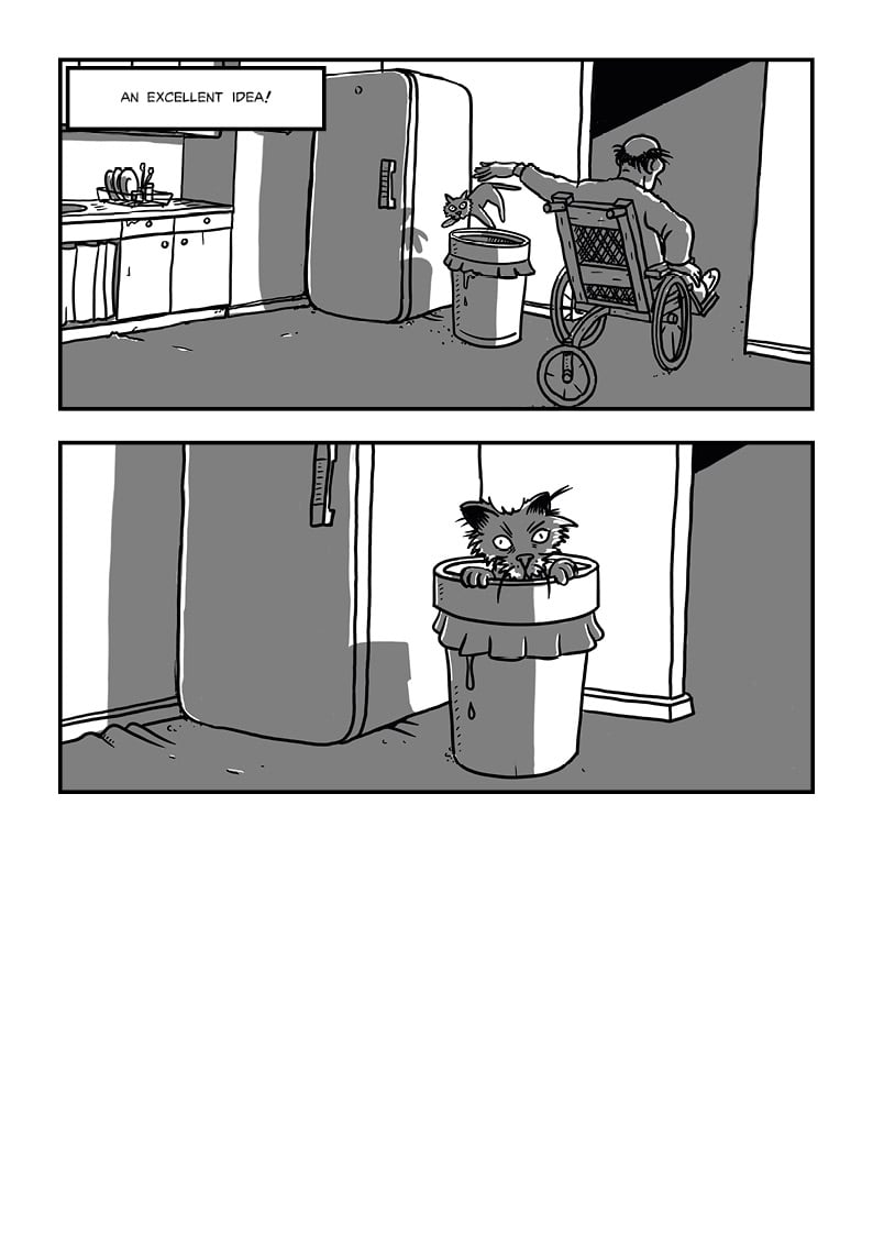 I love the art in this, also the poor cat lol