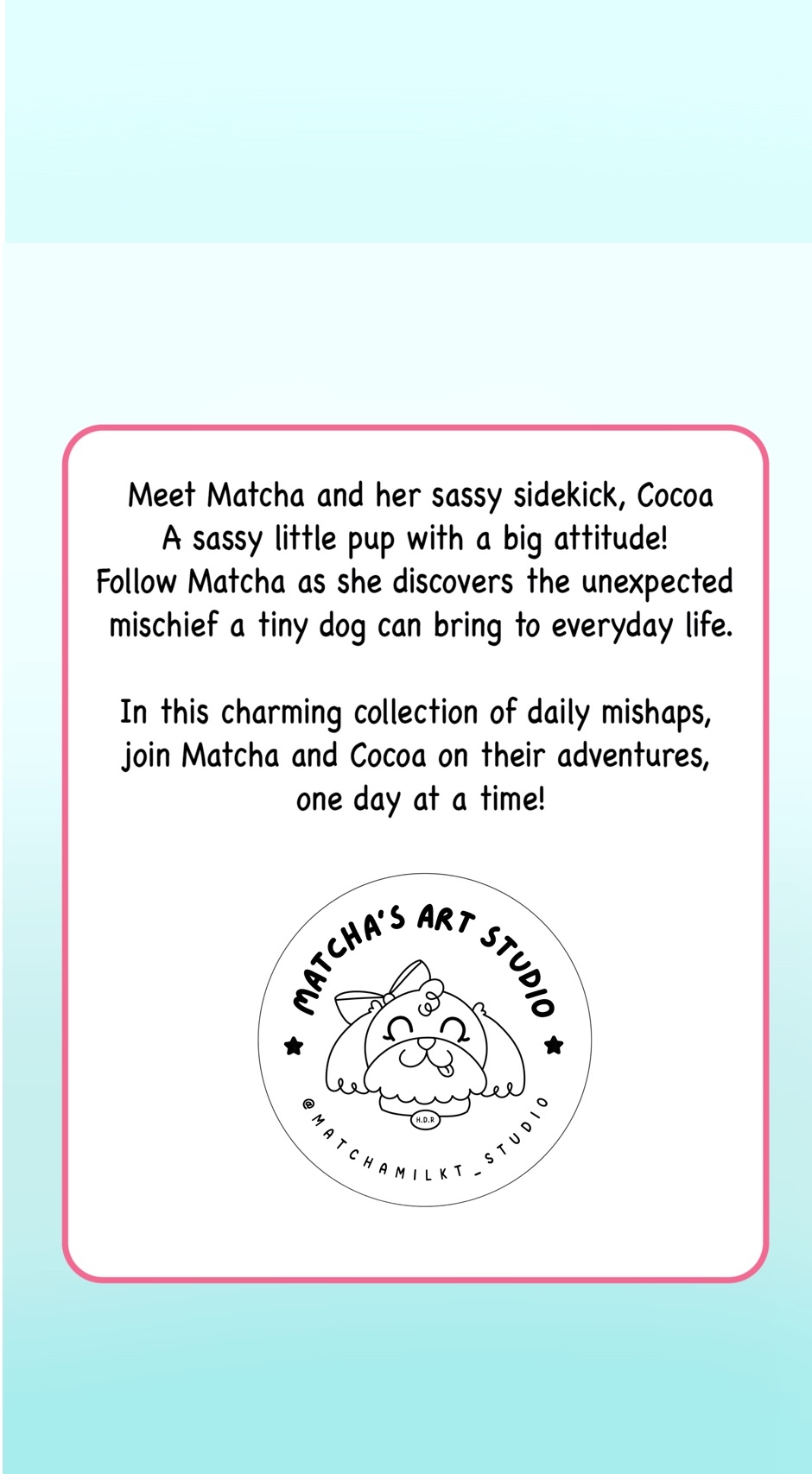 Meet Matcha and her sassy sidekick, Cocoa—a little pup with a big attitude! Follow Matcha as she discovers the unexpected mischief a tiny dog can bring to everyday life.