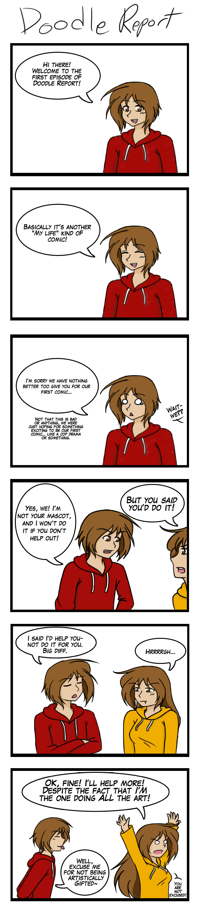 Anisa here- well, this was a great start to things. I was supposed to just be the artist, but since a certain someone wants me to be IN the comic as well, he'll be taking over the upload process as of next episode. So enjoy our mini fight I guess? Hopefully more exciting things will happen next time...