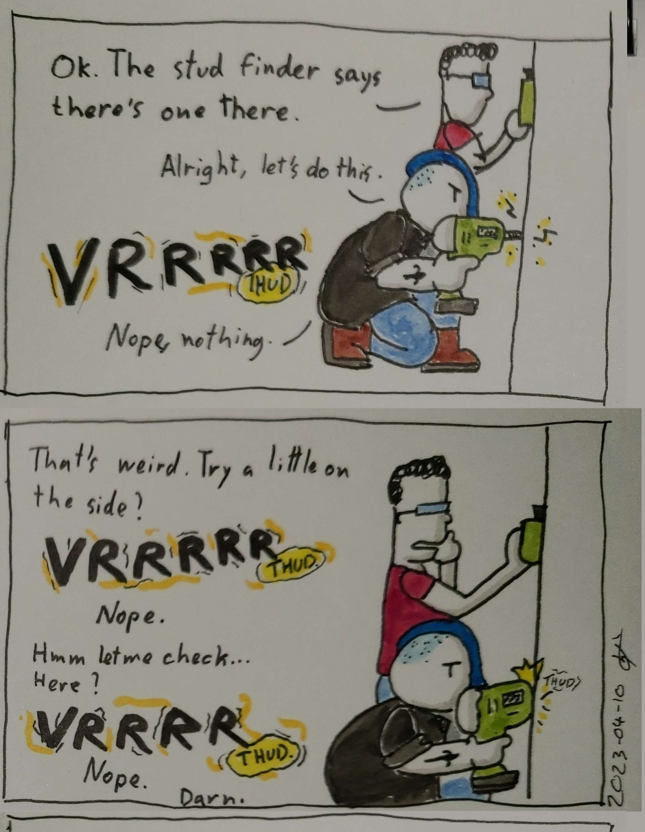 I blame the stud finder, but the fact that it's my first time using one probably didn't help.