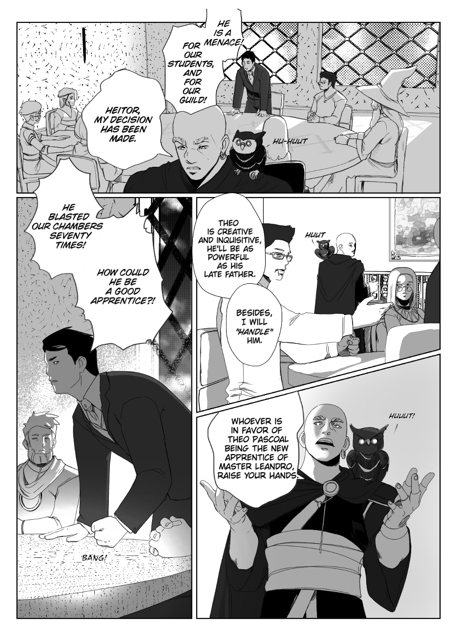 Theo Pascoal is a young mage who studies at the prestigious UAM, where he is the worst among the worst apprentices. But he was not always like that, at age 6 he was a prodigy in the magical arts, and since then he has dedicated himself to the studies of Magic under the guidance of his godfather, Mr. Rabbit. When Theo finally joined the UAM, he discovered that there is much more to magic than what he learned from books, and what master wizards teach in their disciplines. Because of this, Theo insists that it is possible to improve the old spells that are taught, but he always gets into trouble by blowing up classrooms with some modified incantation.