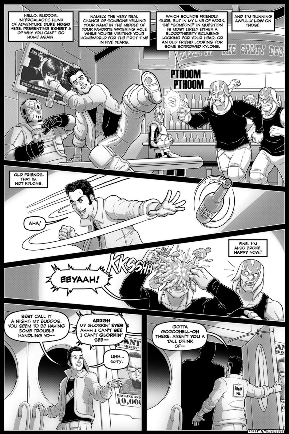 Welcome to Galinagrad, crime-infested industrial armpit of the galaxy. Enter: Duke Nogo! But is he a hero, a villain… or a chump?