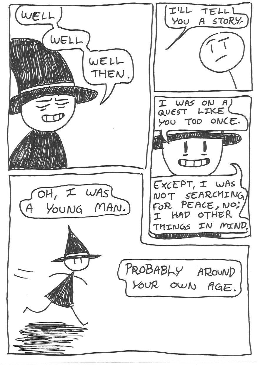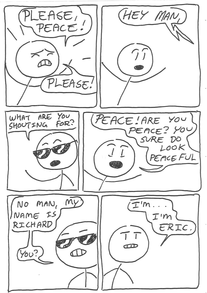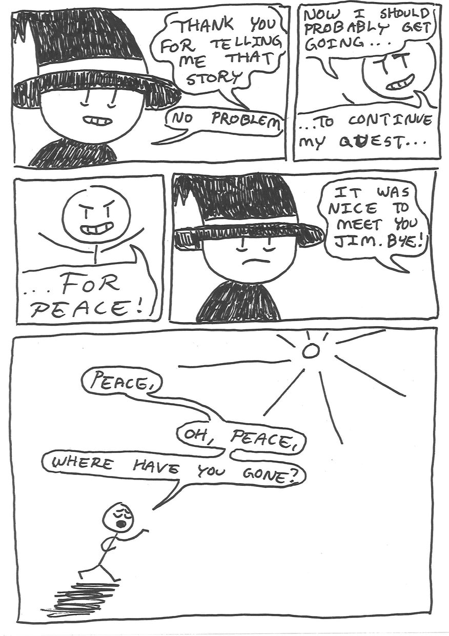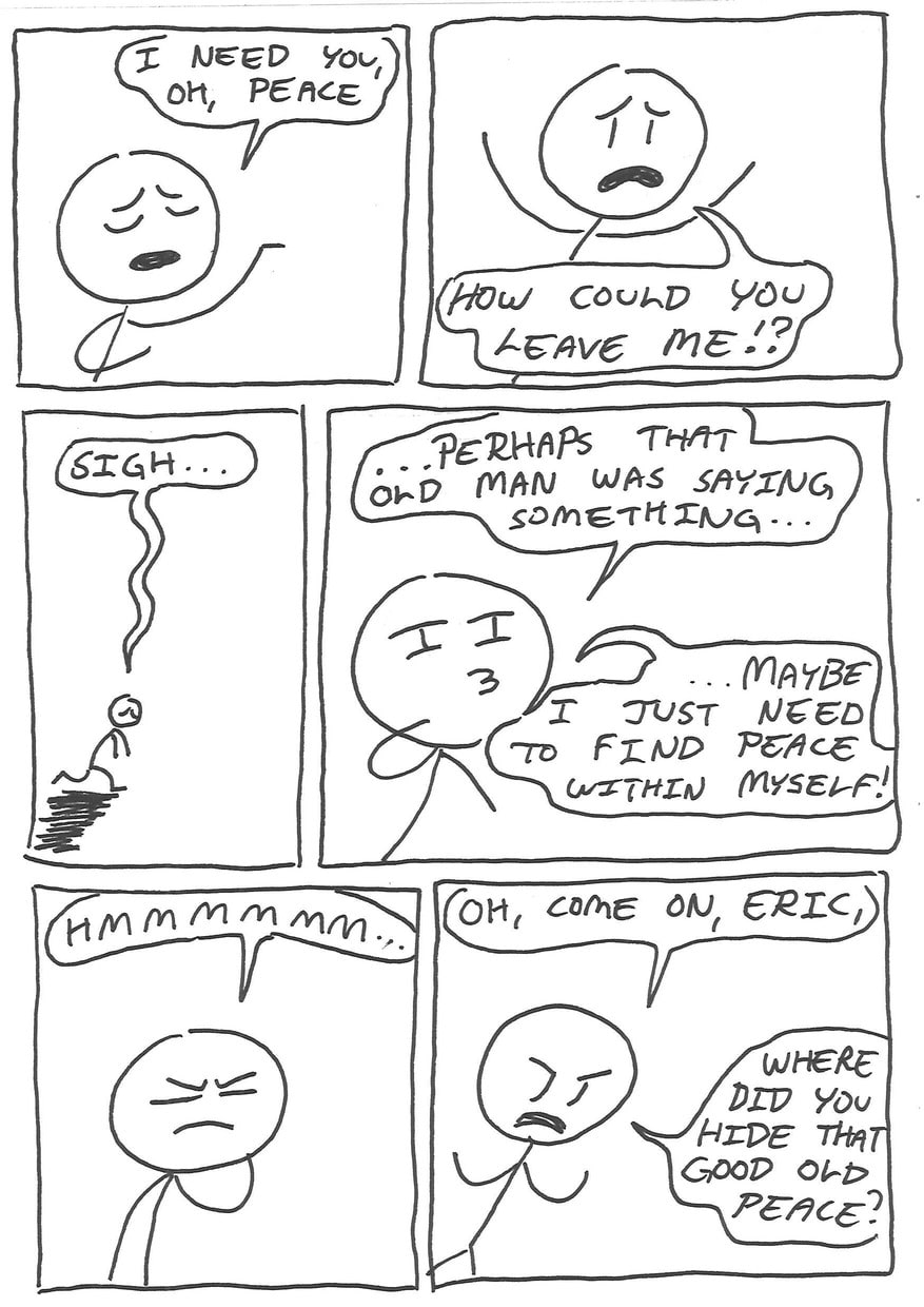 Eric has decided, since growing tired of his irritating, not-peaceful-whatsoever girlfriend, that it is time to leave her and head out on his life's biggest advanture; a quest for peace.