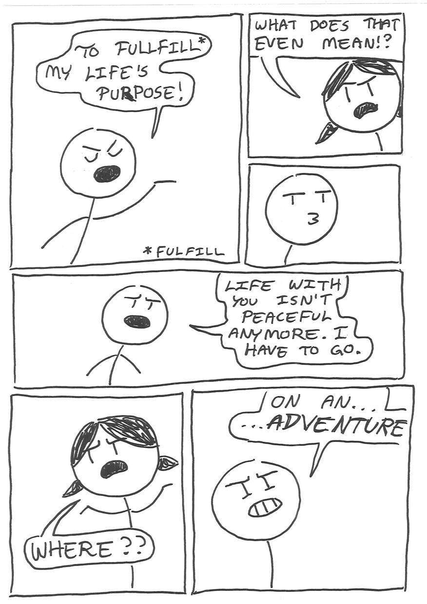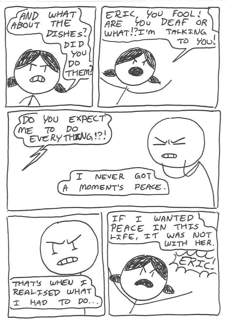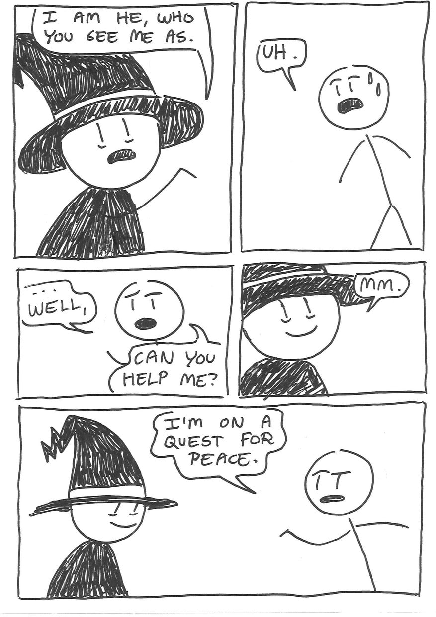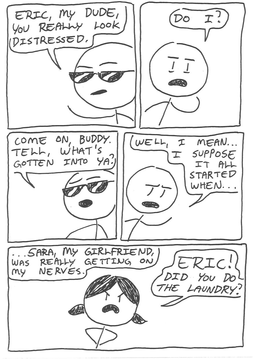 Eric has decided, since growing tired of his irritating, not-peaceful-whatsoever girlfriend, that it is time to leave her and head out on his life's biggest advanture; a quest for peace.