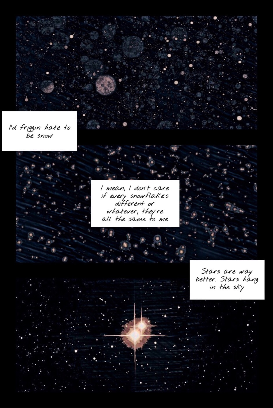 Cold and alone, Charlie reflects on the fleeting existence of snow