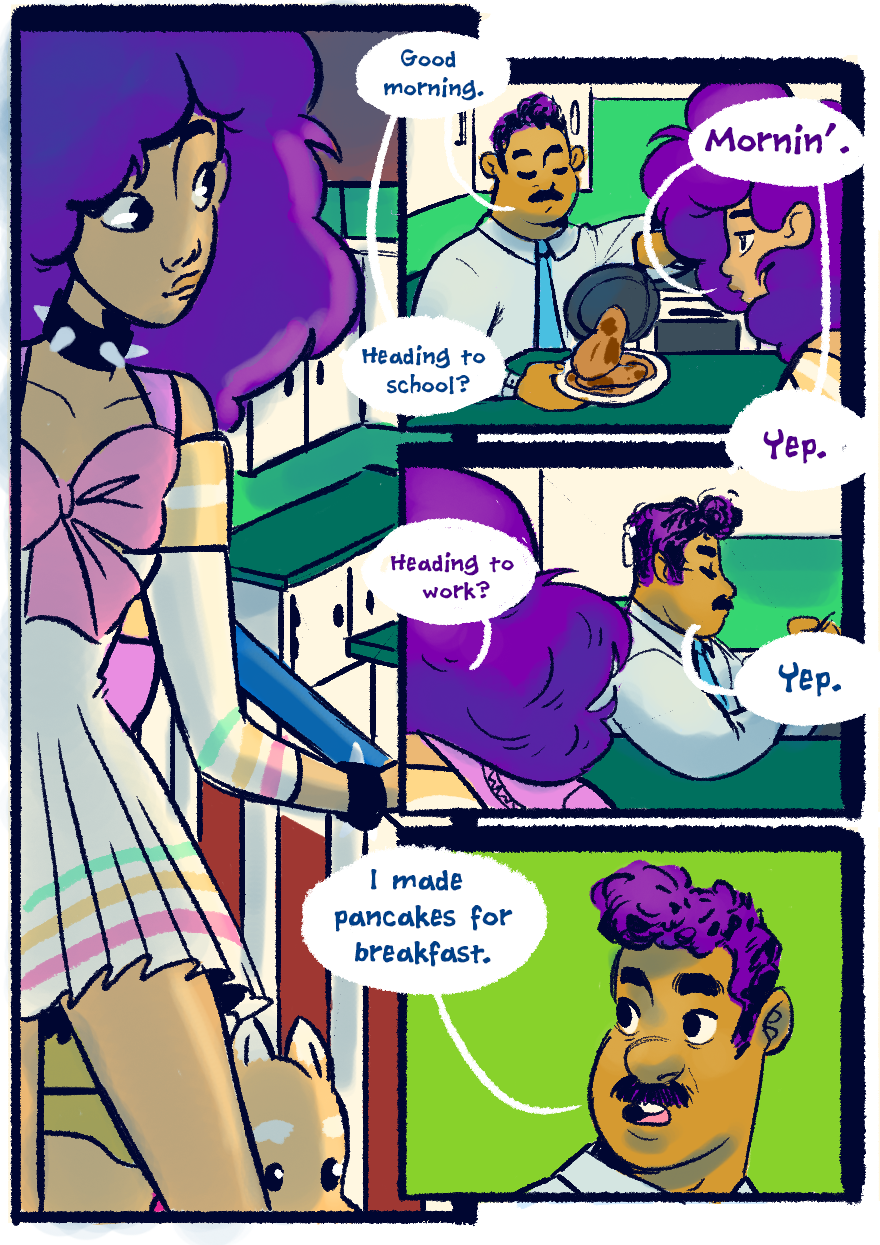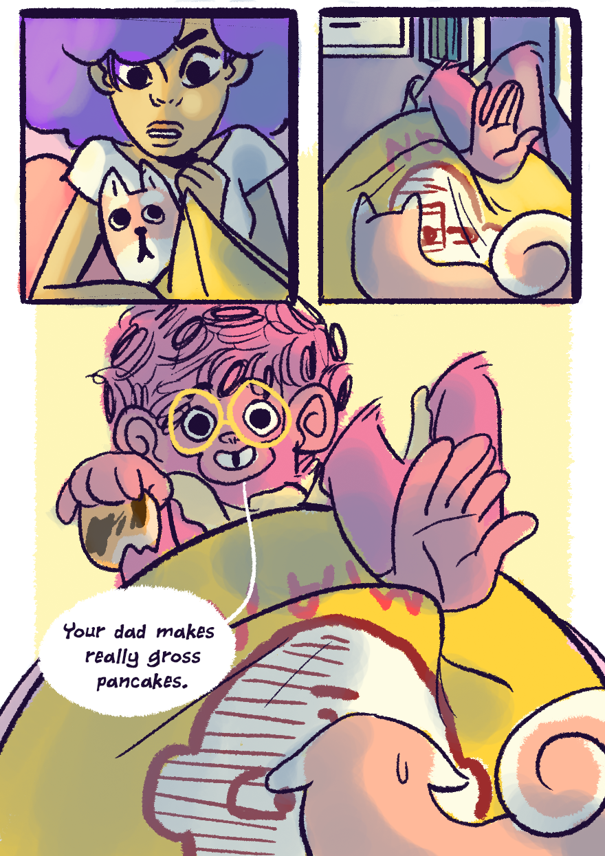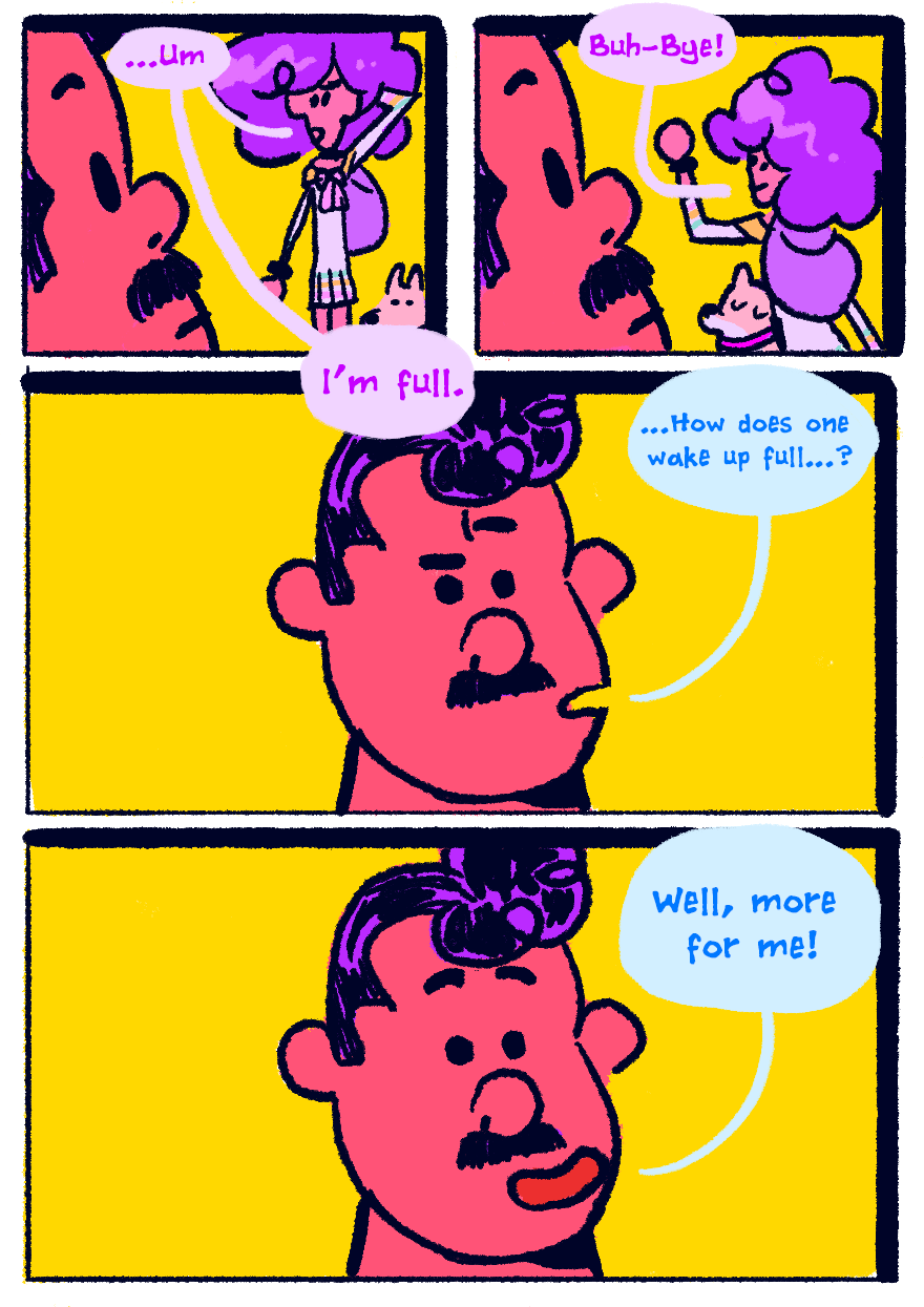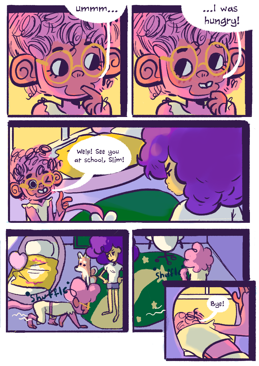 Slim and Yoko receive a rude awakening from their odd neighbor before getting ready for school.