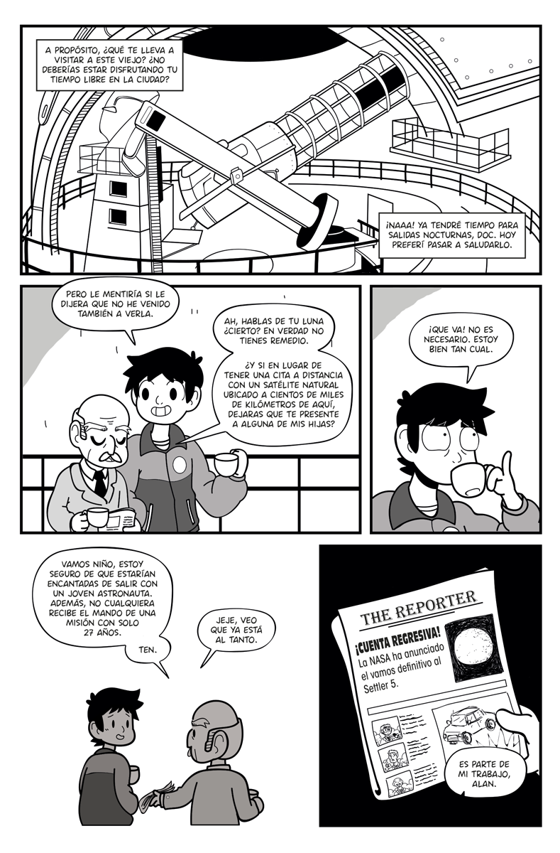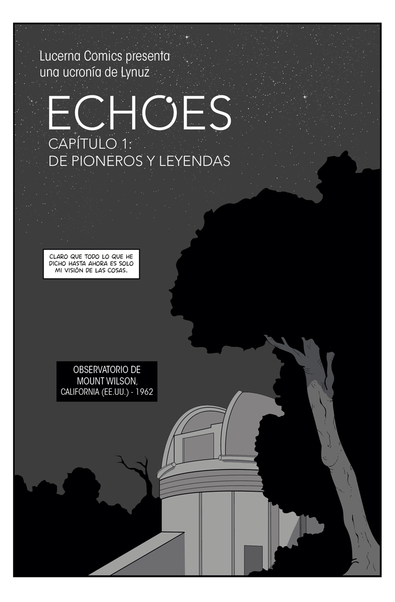 Echoes es un proyecto espacial comenzado en 2015 y estrenado el 20 de Julio de 2016. Lamentablemente los problemas personales no me han permitido mantener un ritmo de actualización regular, han habido varios hiatus e incluso en más de una ocasión pensé seriamente en abandonar el cómic.