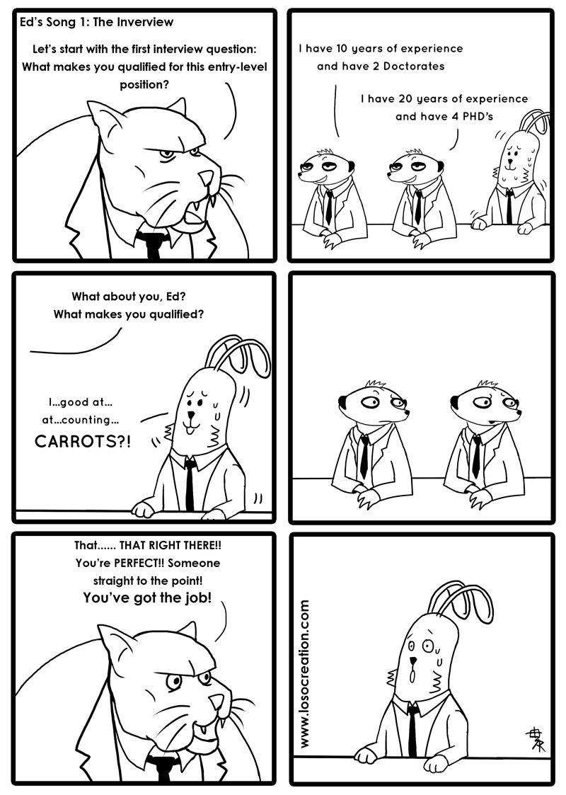 Ed has an interview. Will he seize the moment or let it slip? Mom's spaghetti.