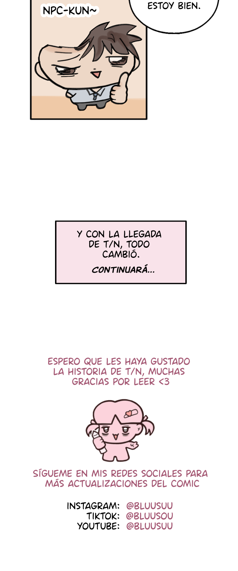 ¿Alguna vez te has preguntado qué hacen los personajes de fondo mientras T/N y su CEO dominante están ocupados teniendo su romance de novela? Pues resulta que no la pasan tan bien. T/N significa “Tu Nombre”, el clásico personaje self-insert… pero esta historia no es sobre ella. Esta historia sigue a NPC-chan, una extra que solo quiere trabajar y vivir tranquila. Sin embargo, cada vez que la dulce T/N respira, el universo decide arrastrar a NPC-chan a otro desastre.