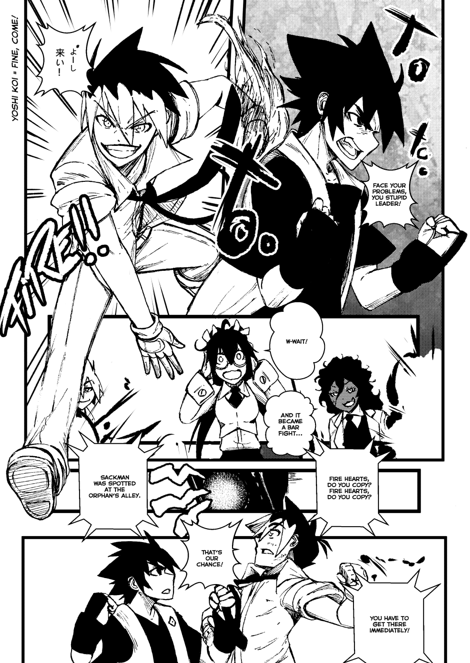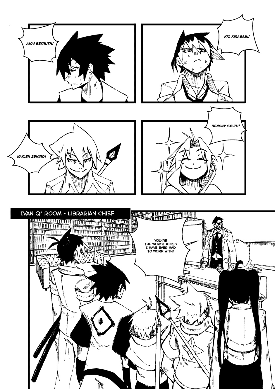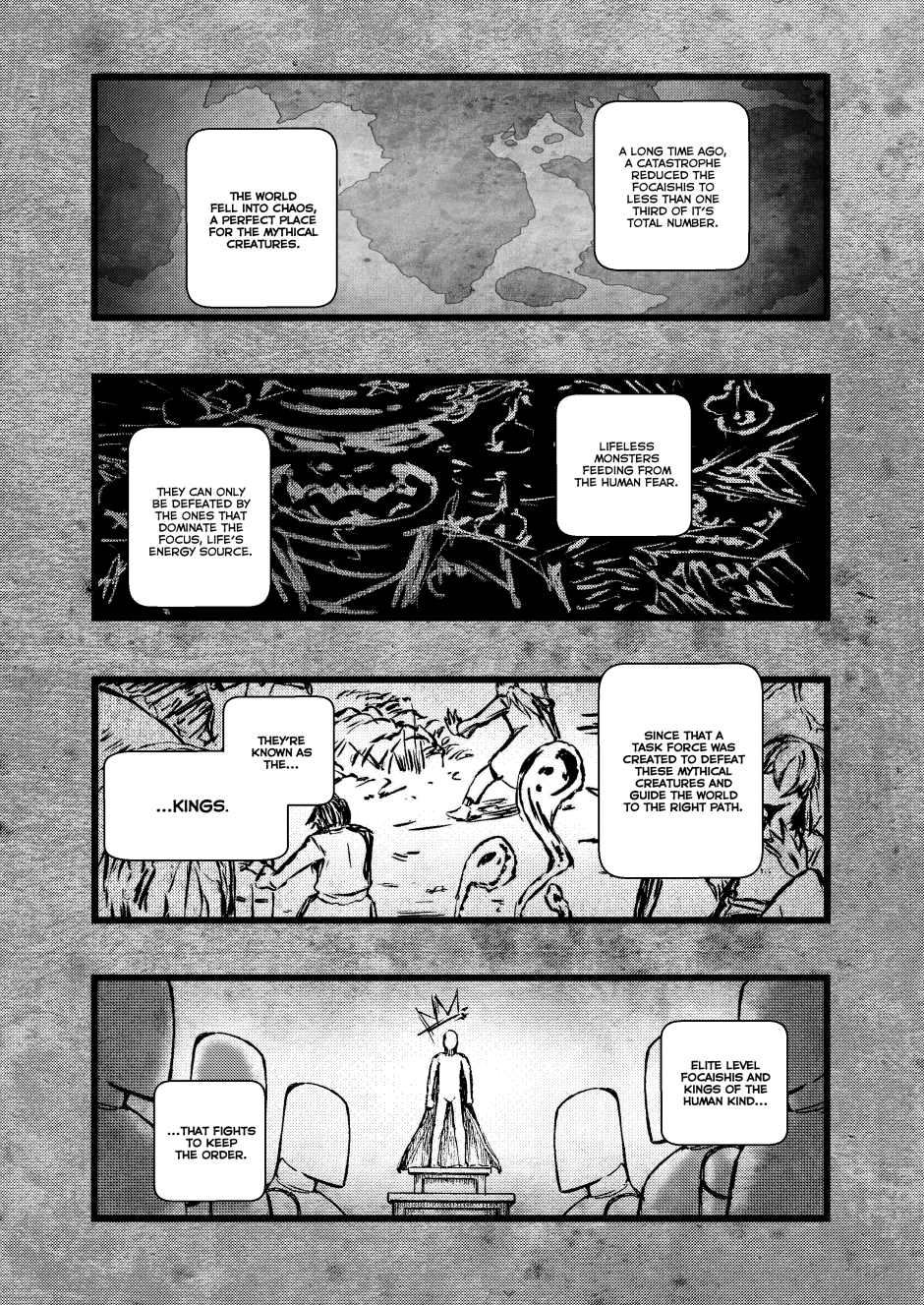 Kings with elemental powers battle mythical creatures—monsters born from fear—to protect humanity, but only if it obeys them. In Fire Hearts, we follow Kio, Akai, Bencky, and Haylen, known as "The Worst Kings of Alexandria," alongside the librarian Mako. In this two-chapter story, they face Sackman, a mythical creature that feeds on children's despair. However, to defeat it, they must learn the true meaning of teamwork.