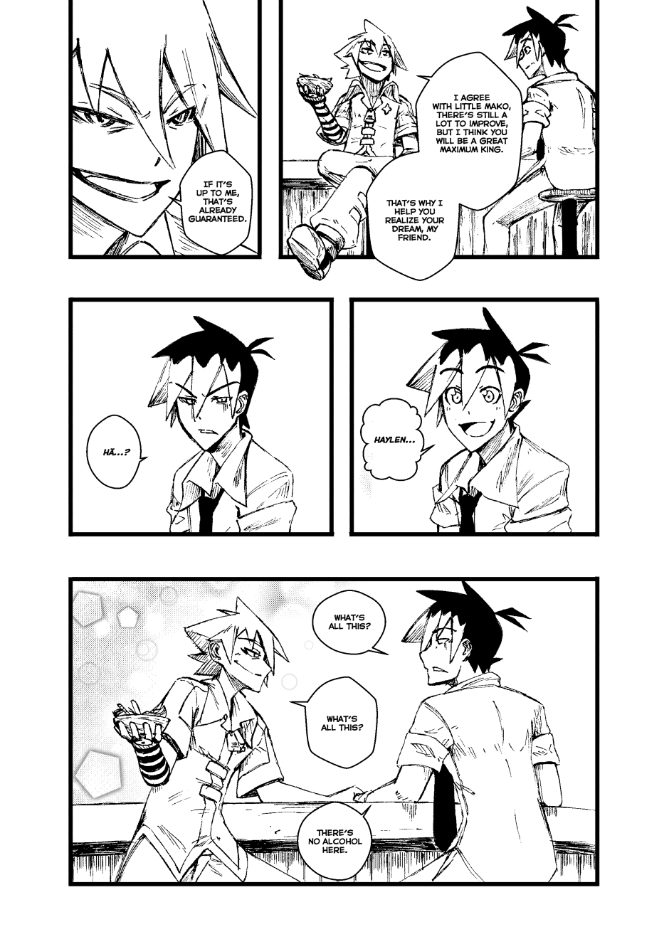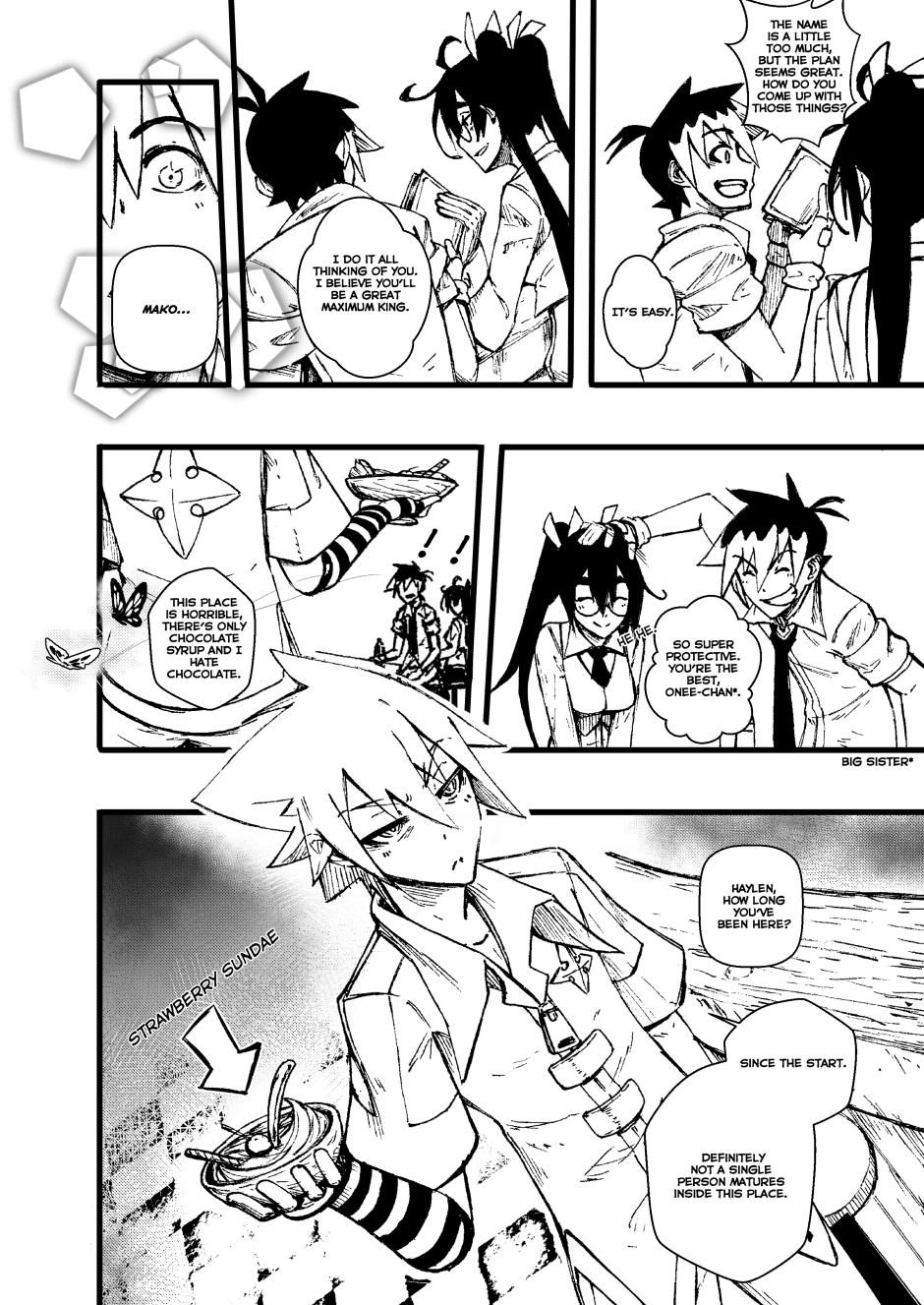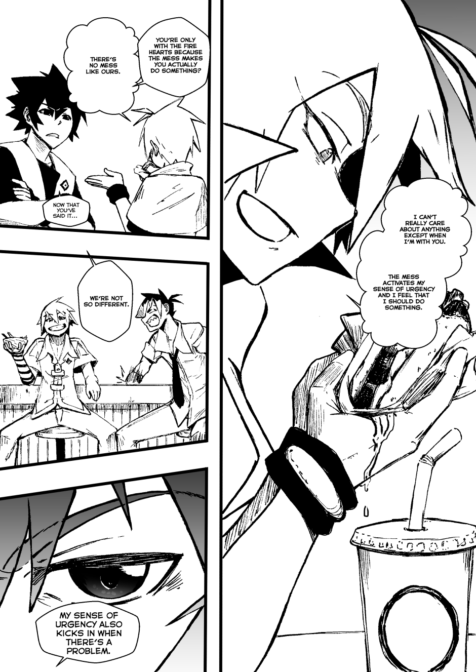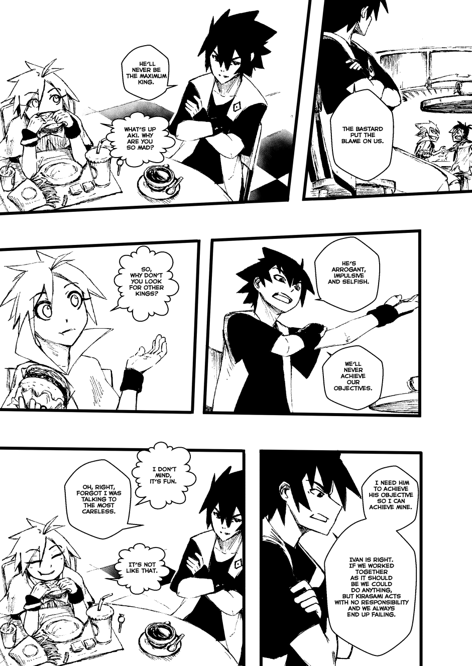 Kings with elemental powers battle mythical creatures—monsters born from fear—to protect humanity, but only if it obeys them. In Fire Hearts, we follow Kio, Akai, Bencky, and Haylen, known as "The Worst Kings of Alexandria," alongside the librarian Mako. In this two-chapter story, they face Sackman, a mythical creature that feeds on children's despair. However, to defeat it, they must learn the true meaning of teamwork.