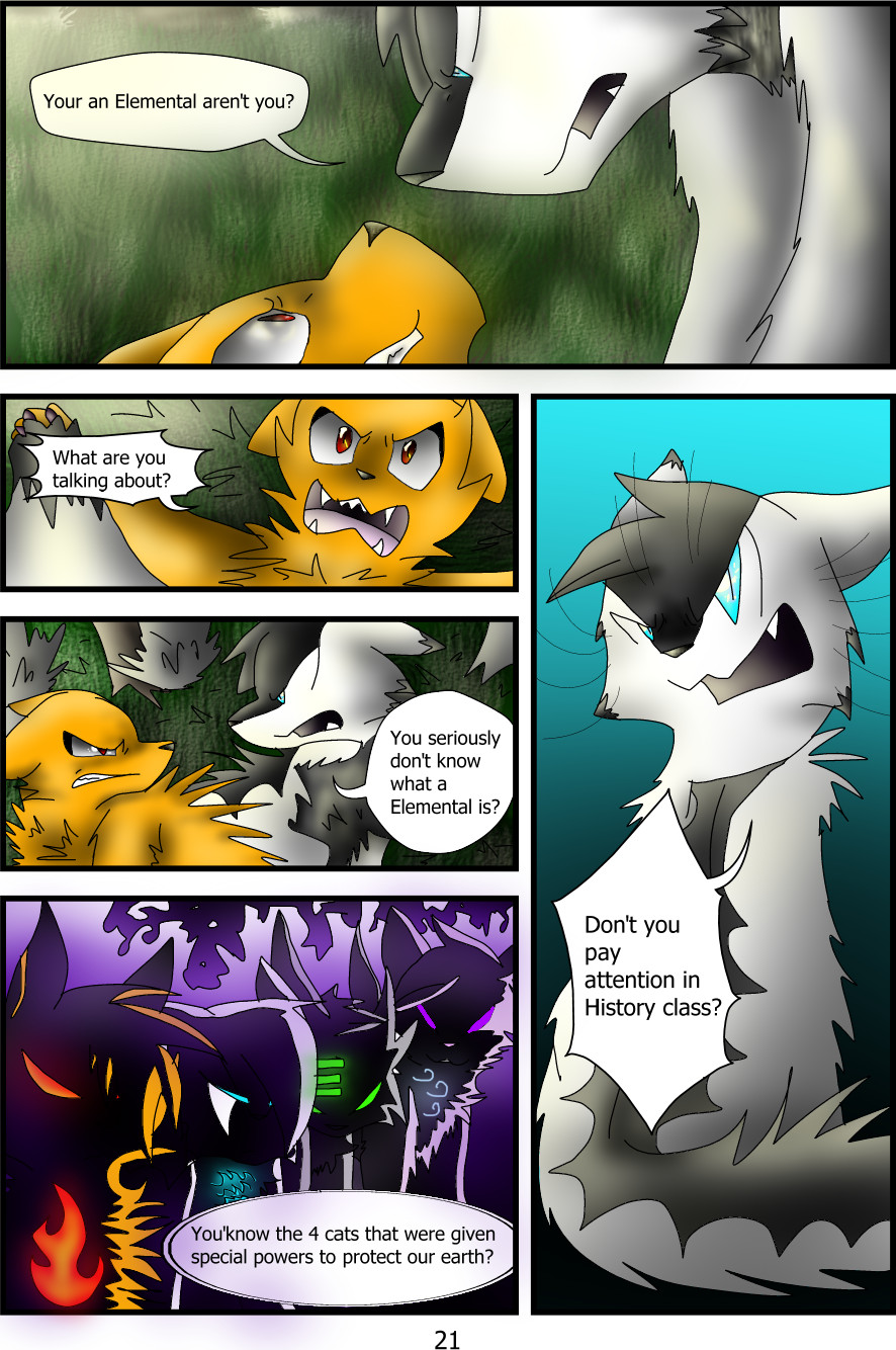 After the reign of humans ended after their sudden disappearance from the world, animal rose up and were bestowed the power to gain knowledge and powers by the gods. The elements that are the foundation of the world: Earth, Water, Wind, and Fire were given to the race of cats in order to keep peace in the world. Nastasia, an outcast of her tribe, discovers that she too possesses the element of fire. She must gather the other Elementals' to stop the continent from being taken over by Neo, a mysterious cat whose goal is to revolutionize animal kind and over throw the Wolf Empire from its rule.