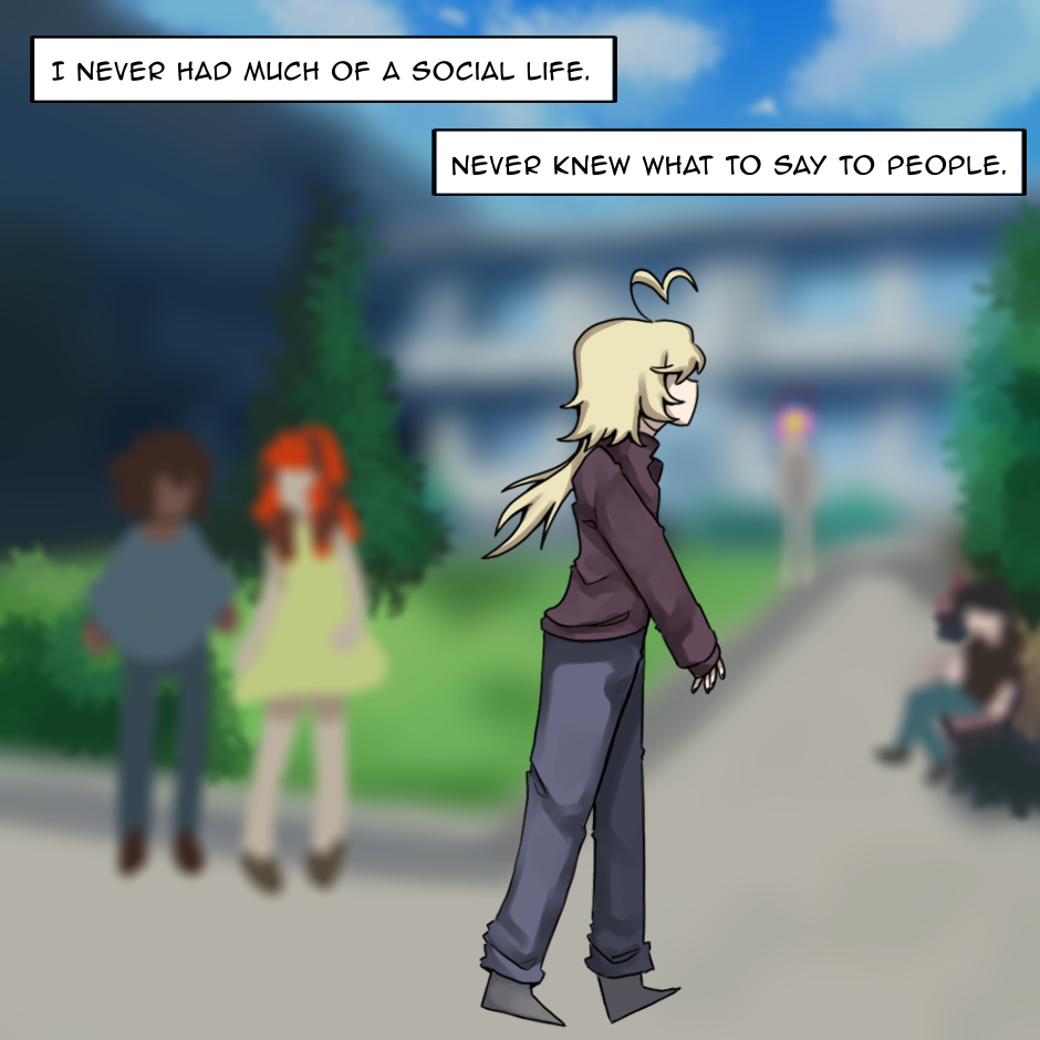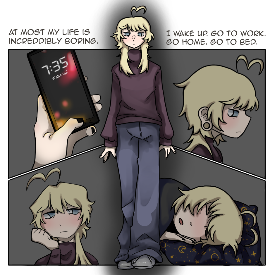 Life for our character has become predictable and boring, but an ordinary grocery run turns into something they could have never expected. It's too tall, too lanky, and resembles them in a way that doesn't seem right.