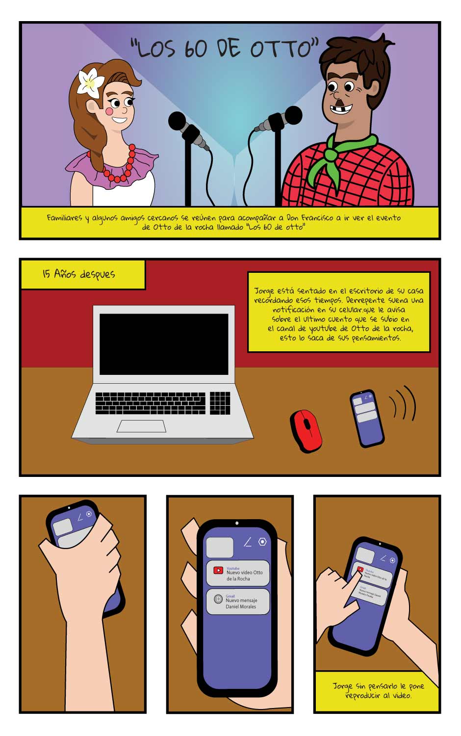 "Entrando en tu mundo" es un drama familiar sobre Jorge, un adolescente que prefiere los videojuegos, y su abuelo, Don Francisco, un devoto de la cultura nicaragüense, especialmente de la música y cuentos de Otto de la Rocha. Un accidente del abuelo obliga a Jorge a reemplazarlo y ayudar al coro en un evento, forzándolo a sumergirse en la música tradicional. Esta experiencia no solo lo reconecta con su abuelo y la comunidad, sino que también culmina en un viaje familiar al evento "Los 60 de Otto" en el Teatro Nacional. Quince años después, un adulto Jorge transmite orgullosamente este legado cultural a su propio hijo.